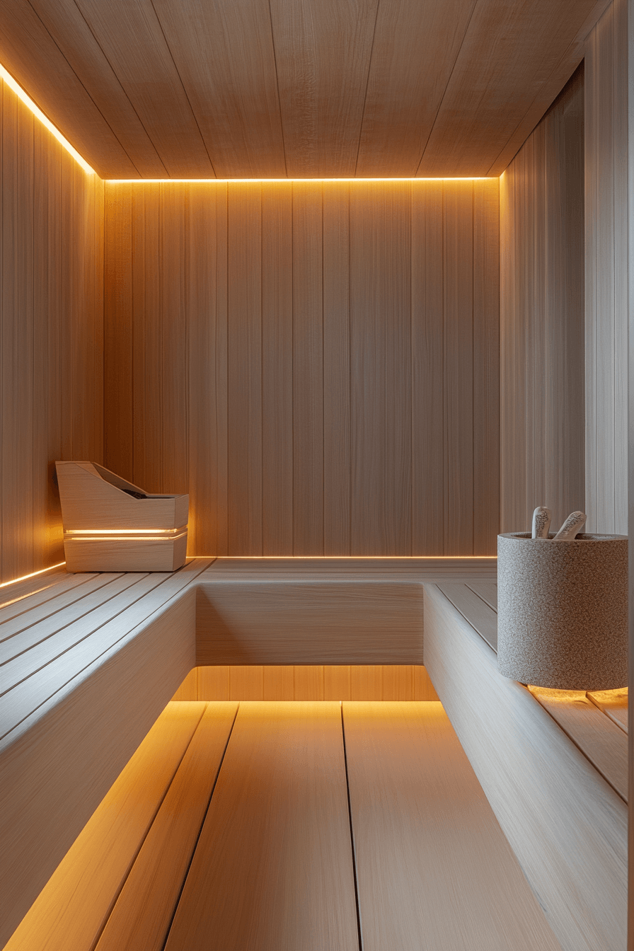Refined details create boutique-inspired sauna ideas that feel intimate and luxurious. Rich finishes and curated design elements elevate the space. Custom lighting enhances the atmosphere. The environment feels personal and indulgent. These sauna ideas capture the essence of a private retreat. Bring boutique elegance into your home.