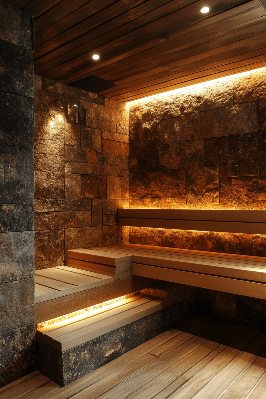 Textured flooring introduces a tactile element into innovative sauna ideas. Natural materials add sensory comfort underfoot. The texture enhances relaxation. The design feels unique and engaging. These sauna ideas offer a fresh perspective on wellness. Explore tactile sauna experiences.