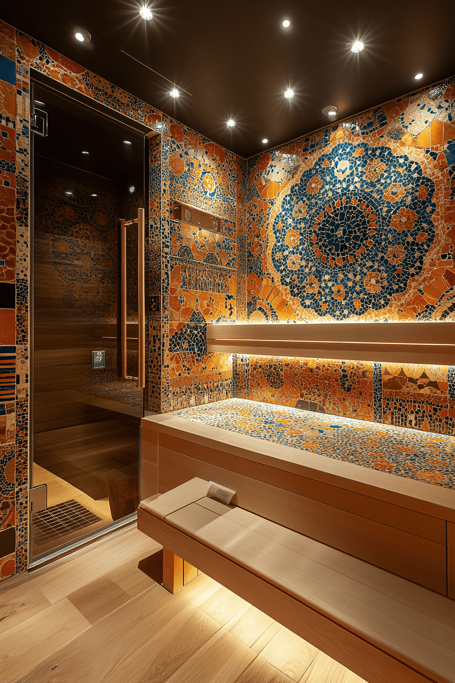 Creative expression shines through artistic sauna ideas filled with unique design elements. Mosaic tiles add color and personality. Patterns create visual interest and storytelling. Durable finishes ensure longevity. These sauna ideas turn relaxation into an artful experience. Get inspired by bold and creative sauna design.