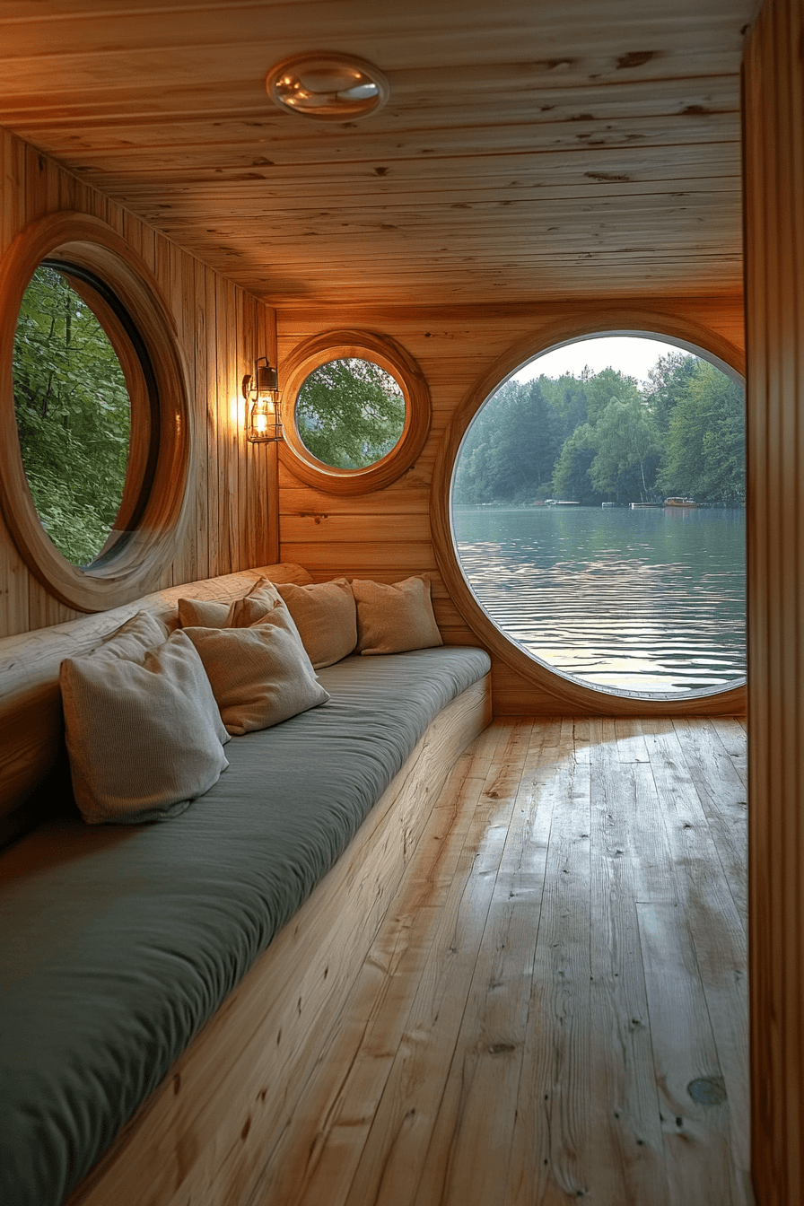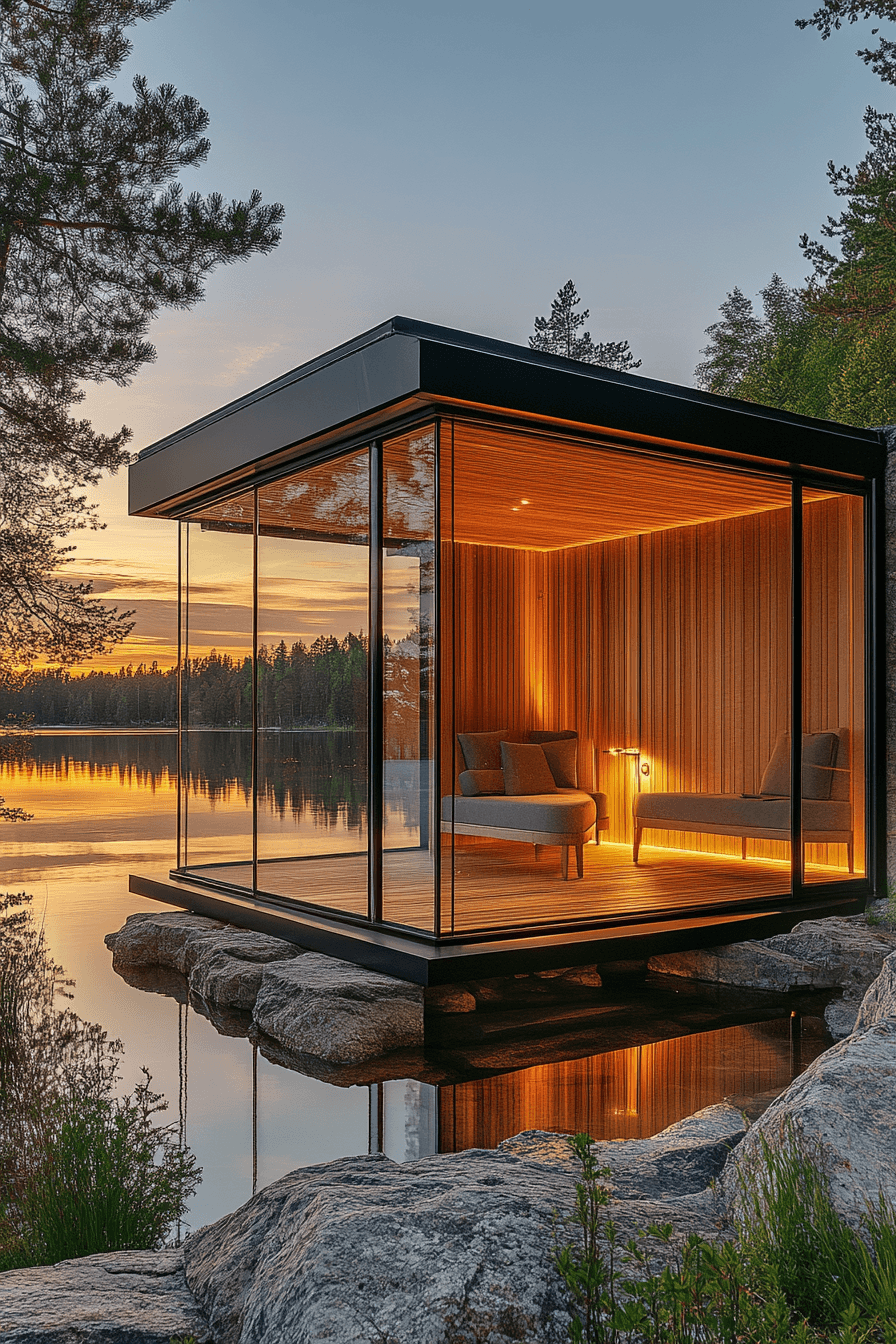 Floating concepts introduce tranquility into one-of-a-kind sauna ideas set on water. The gentle movement enhances relaxation. Large windows capture peaceful views. The environment feels immersive and calming. These sauna ideas create a truly unique escape. Imagine your own floating sanctuary.