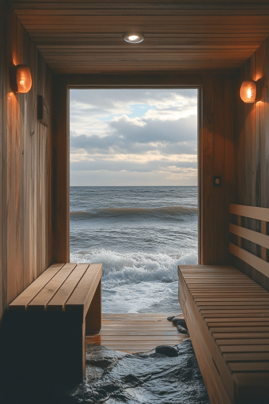 Oceanfront designs inspire peaceful sauna ideas connected to coastal beauty. Expansive views enhance relaxation. Durable materials handle the environment with ease. Soft tones create a calming palette. These sauna ideas merge nature with comfort. Create your dream seaside sauna retreat.