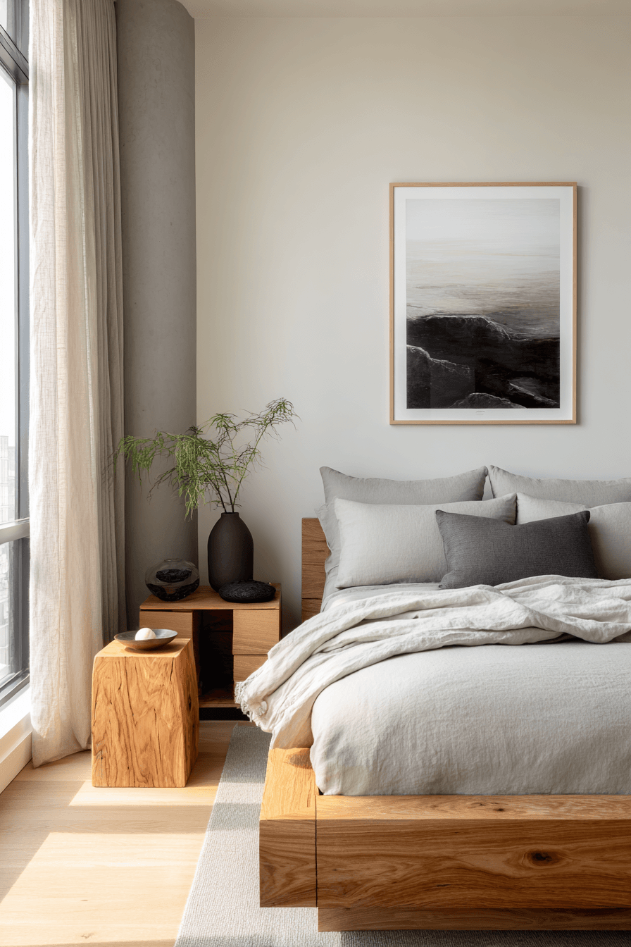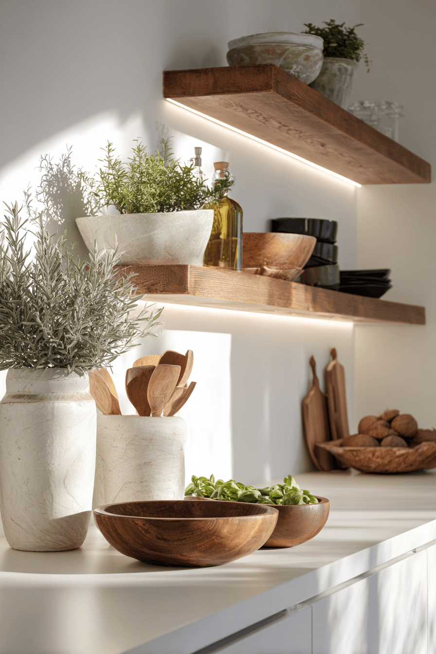 Sun-washed wood tones create a calming foundation in organic modern decor that feels effortlessly warm and inviting. The natural variation in grain adds quiet movement and visual interest throughout the space. These elements soften sleek interiors while maintaining a refined look. Whether used in furniture or subtle accents, wood instantly grounds the design. The atmosphere feels balanced, natural, and elevated. Step into more organic modern decor ideas that feel beautifully lived-in.