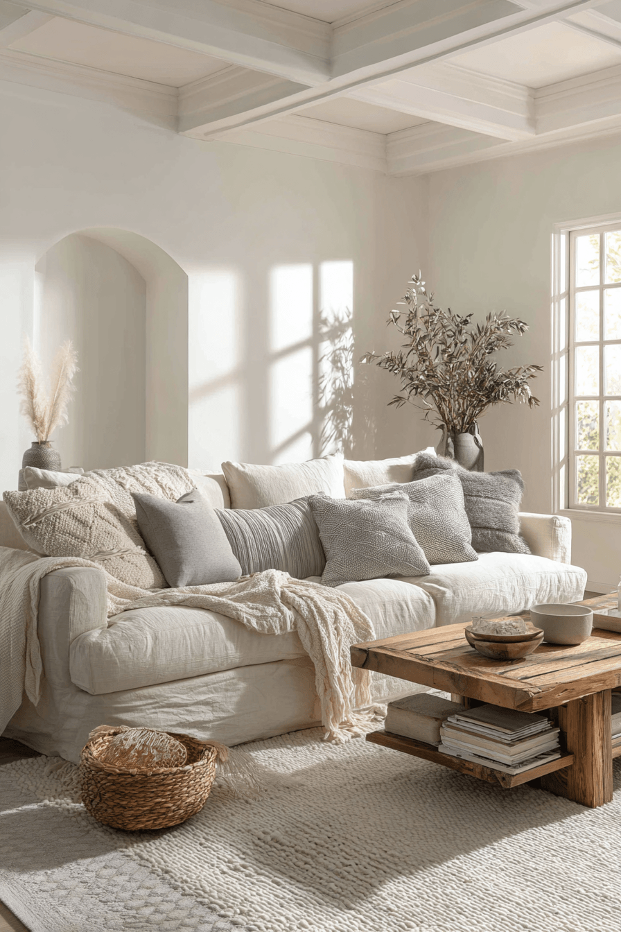 Cozy natural fabrics bring comfort into organic modern decor while maintaining a refined aesthetic. Wool and linen add warmth and texture. These materials feel soft yet durable for everyday living. They create layers that enhance the design without overwhelming it. The space feels welcoming and elevated. Discover more organic modern decor ideas with fabric layers.