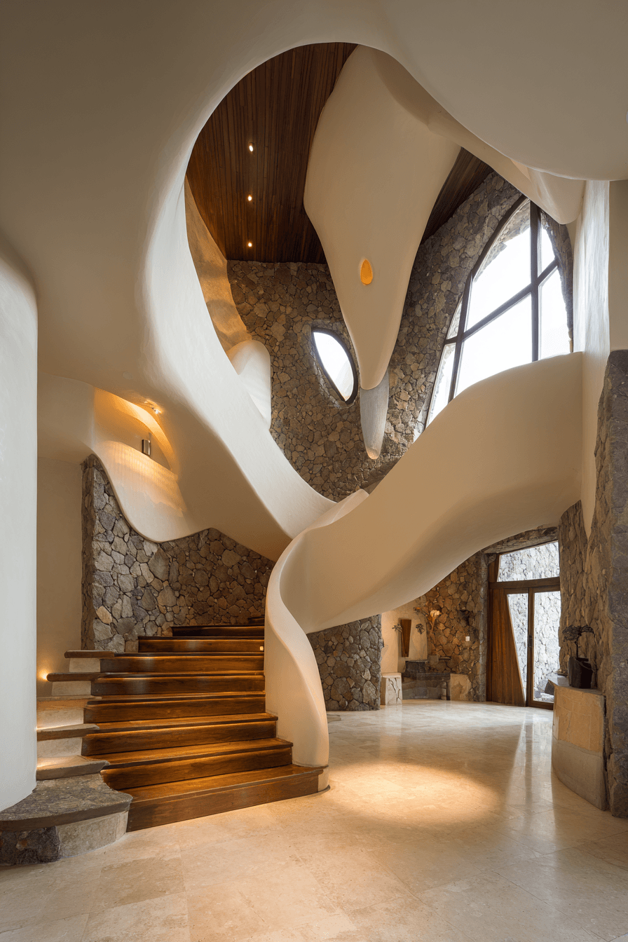 Organic curves introduce softness into organic modern decor by echoing shapes found in nature. Rounded edges and flowing lines create movement within the space. These forms enhance both comfort and visual interest. They break up rigid layouts beautifully. The design feels harmonious and inviting. Explore more organic modern decor ideas with natural curves.