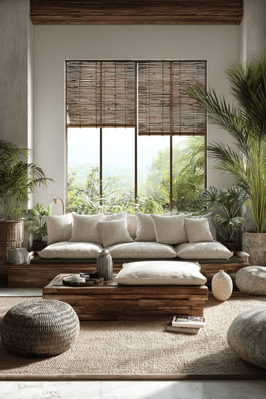 Light bamboo accents introduce an airy and eco-conscious element into organic modern decor that feels fresh and modern. The soft tone adds warmth without overwhelming the design. Bamboo works beautifully in furniture and smaller decor pieces. It supports sustainability while enhancing style. The space feels light and balanced. Explore more organic modern decor ideas featuring bamboo.