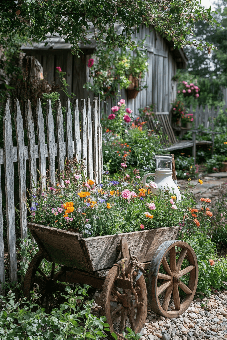 Creative expression shines through antique yard decor ideas using repurposed garden pieces. Old wheelbarrows become charming planters. Weathered patina adds storytelling appeal. Flowers bring color and life to aged materials. Sustainability meets style effortlessly.
