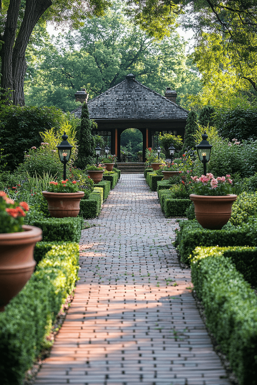 Movement and order define antique yard decor ideas inspired by colonial-style pathways. Brick and stone walkways guide the eye with purpose. Lantern lighting enhances ambiance after dusk. Trimmed greenery reinforces symmetry and tradition. Each path invites quiet exploration.