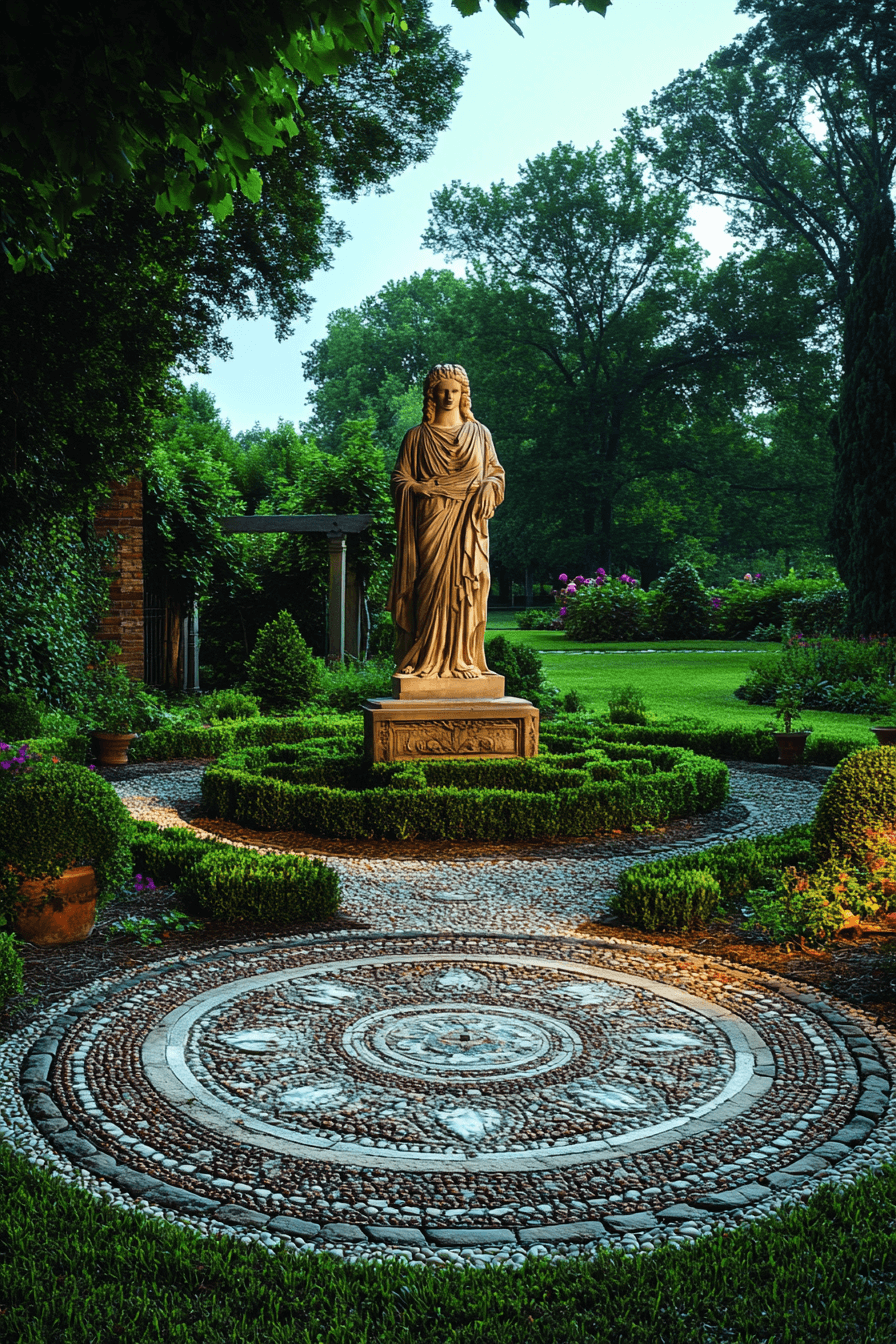 Artful storytelling emerges with antique yard decor ideas that include stone statuary. Classical figures and nature-inspired forms create focal moments. Thoughtful placement adds balance and visual rhythm. Weathered textures enhance antique appeal. Each statue brings depth and meaning.