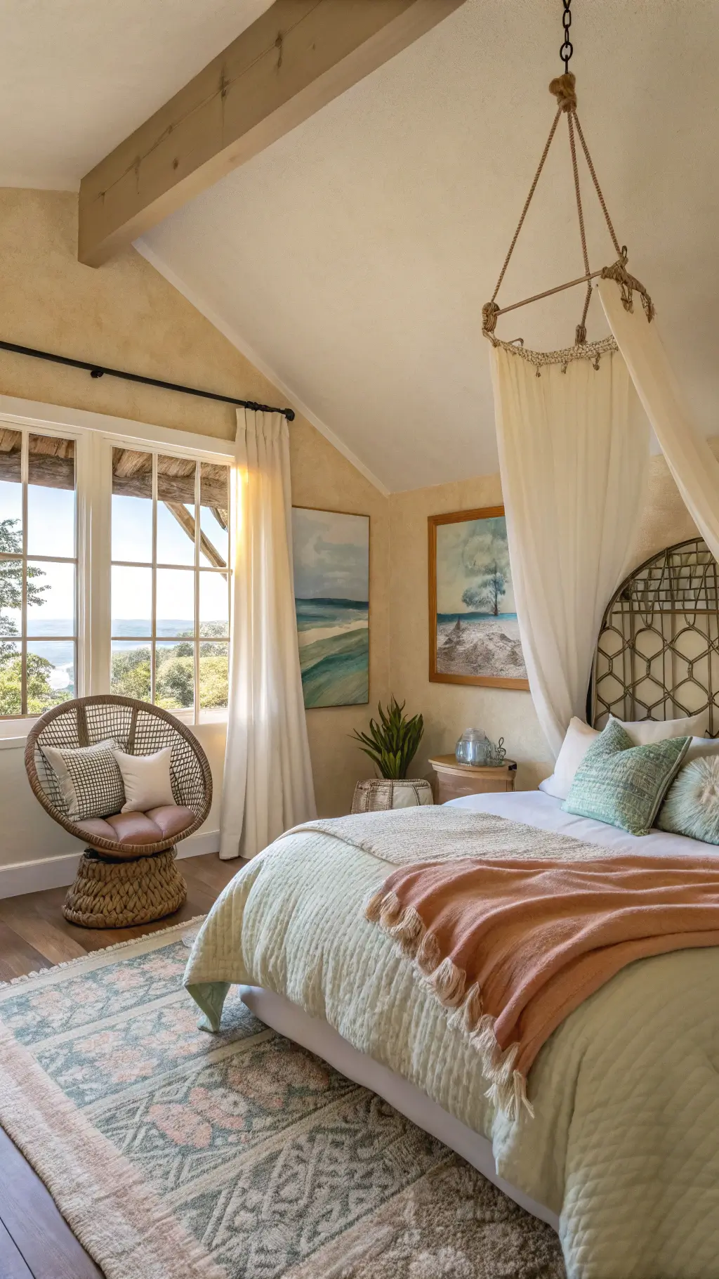Imagine walking into a bedroom that feels like a perfect blend of tropical relaxation and artistic expression. That’s the magic of beachy boho – a style that turns your personal space into a sanctuary of calm and creativity.