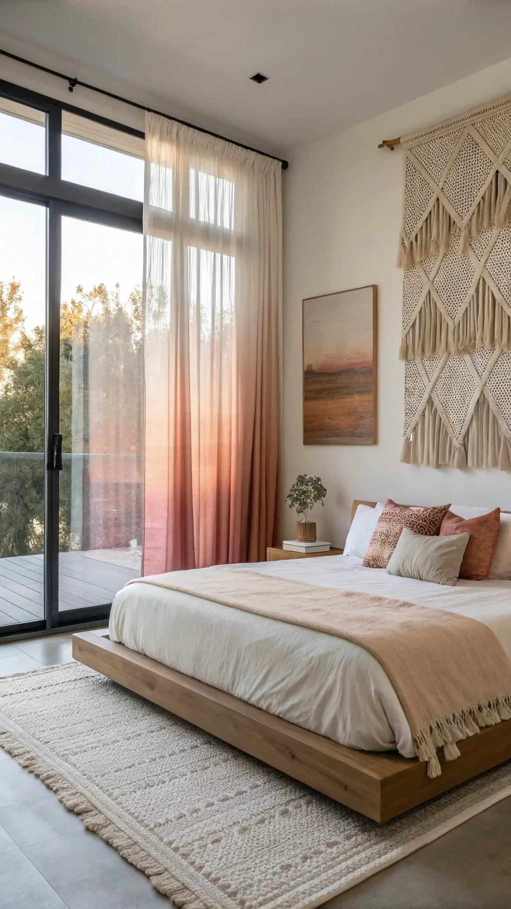 | Macramé | Woven | Earthy | Rattan furniture, indoor plants |