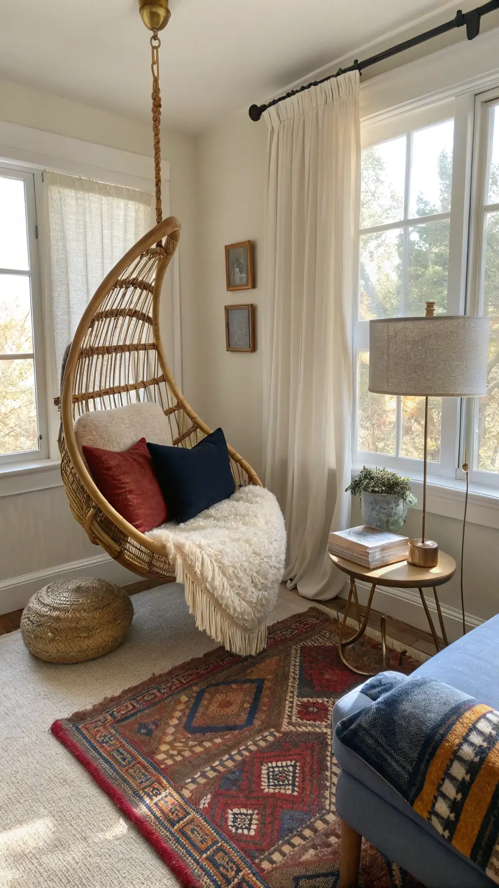 - Layer different materials: woven rugs, plush pillows, macramé accents