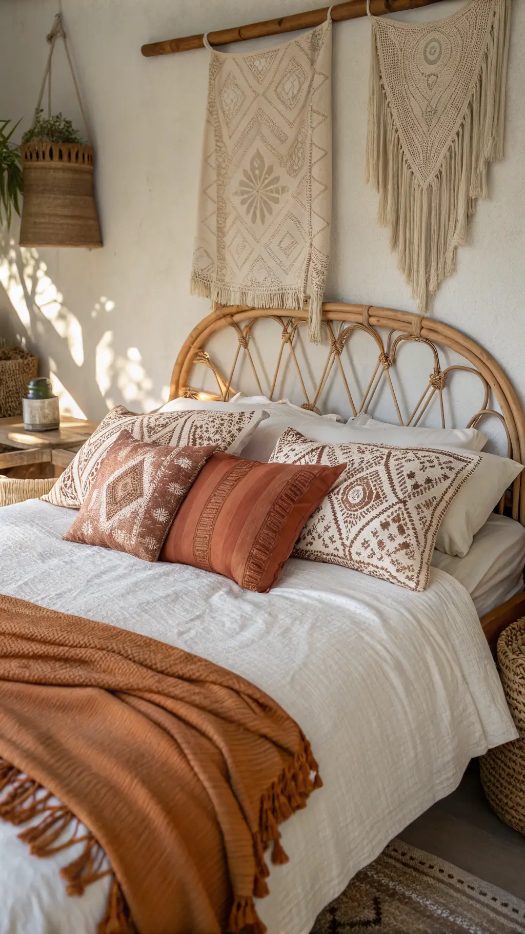 - Rattan Bed or Headboard: The instant boho game-changer