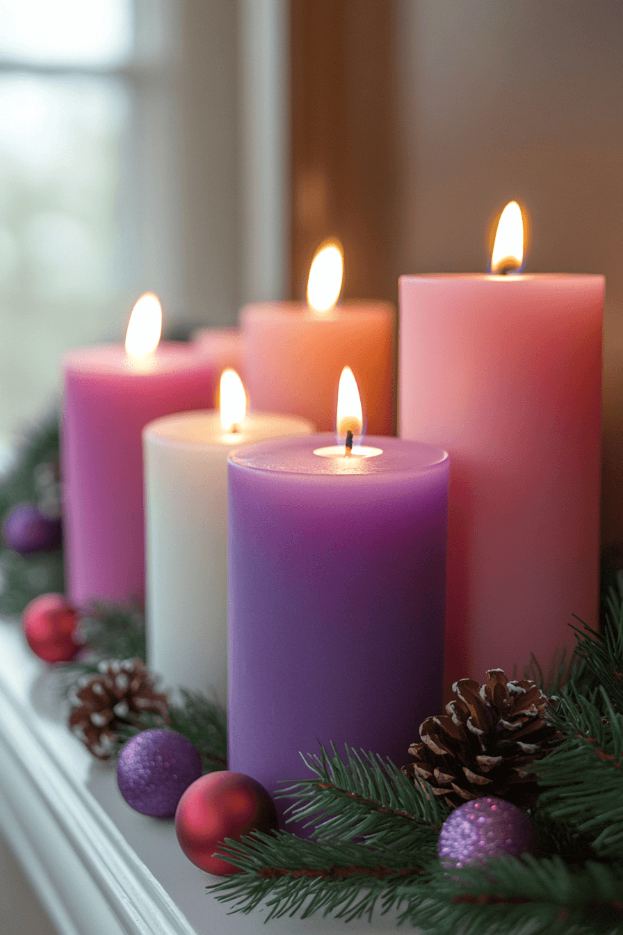 Mark the holiday countdown with an Advent candle display that builds anticipation and meaning. Each week, the gentle lighting of a new candle brings calm and connection to your festive rituals. These Christmas candle decor ideas are perfect for those who cherish tradition with style. Personalize your setup with natural or elegant accents to make it your own.