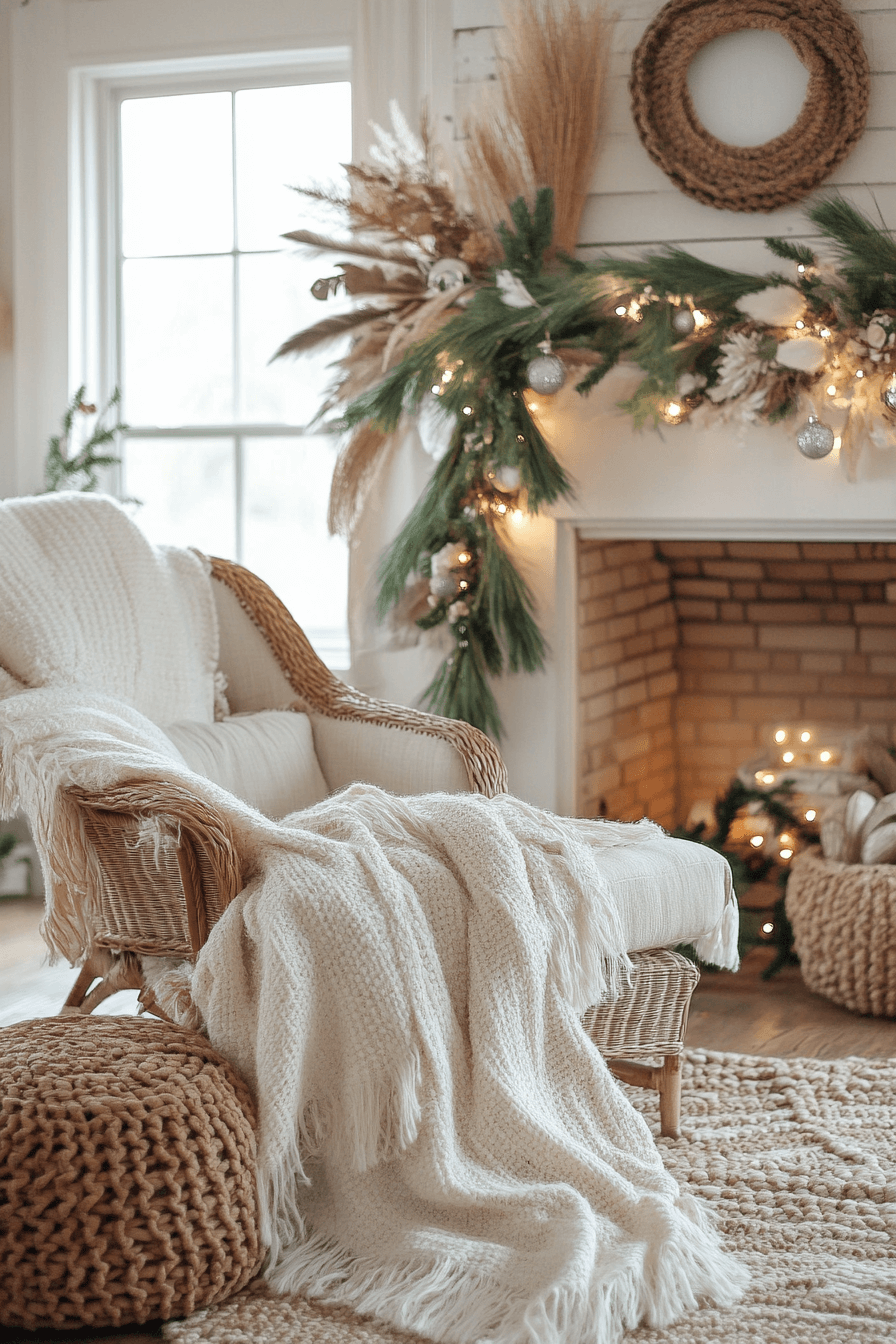 Macramé garlands, wooden beads, and woven stockings make this bohemian Christmas mantel decor feel effortless and creative. The earthy textures balance perfectly with metallic hints or jewel-toned ornaments. It’s relaxed, artistic, and soulfully warm. Every piece tells a story of handmade charm. Celebrate your free spirit this holiday and let your mantel express cozy creativity.