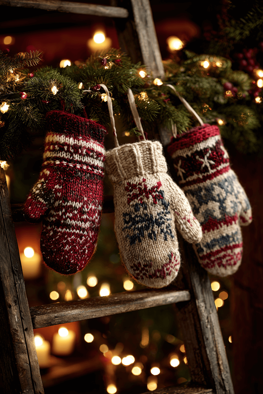 Knitted mitten Christmas ornaments bring a warm, handmade touch that’s perfect for cozy winter vibes. Their soft textures and classic patterns make your tree feel like home. Whether rustic or colorful, these mini mittens fit beautifully into cabin-style or farmhouse decor. They’re great for adding that hygge-inspired charm.