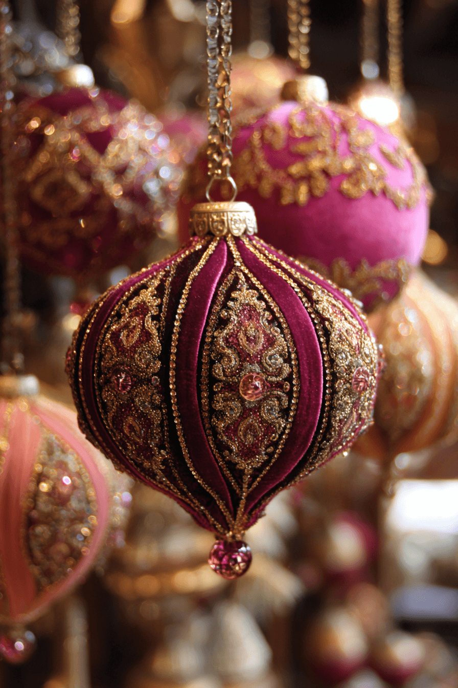 Velvet and silk Christmas ornaments wrap your tree in luxury, adding texture, depth, and rich color. These plush materials create a warm, sophisticated vibe with every elegant detail. Pair them with metallics or classic reds for a regal feel. They’re perfect for high-end themes or vintage elegance.