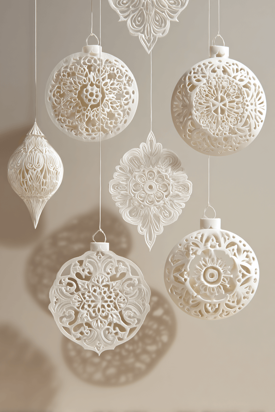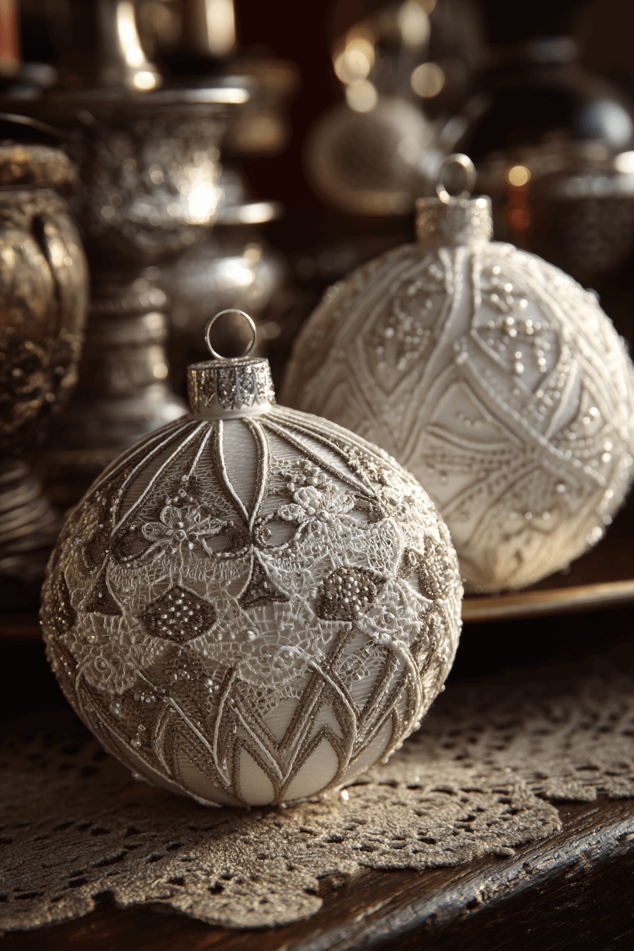 Lace and embroidered Christmas ornaments bring delicate craftsmanship and heirloom charm to your holiday decor. Intricate patterns and soft fabrics make them look and feel lovingly made. They pair beautifully with vintage or shabby chic styles, adding a soft elegance to your tree. These dainty touches turn your tree into a work of art.