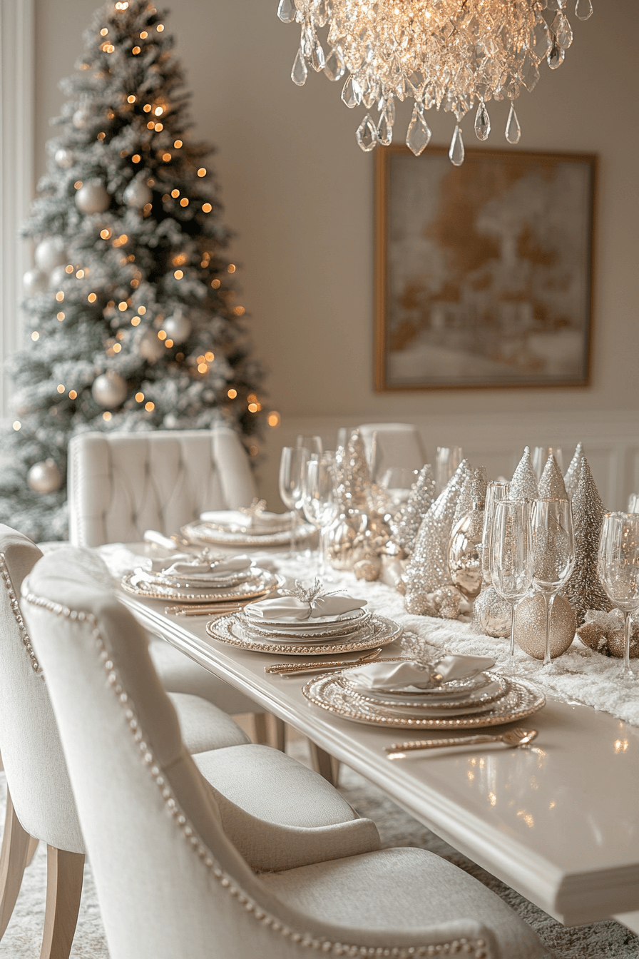 Celebrate in champagne style with cozy Christmas decor that sparkles in soft metallics and elegant textures. Think creamy whites, gold tinsel, and delicate beading for a refined and festive look. It’s the perfect balance of glamour and coziness. Add crystal accents or sequined touches for a show-stopping finish.