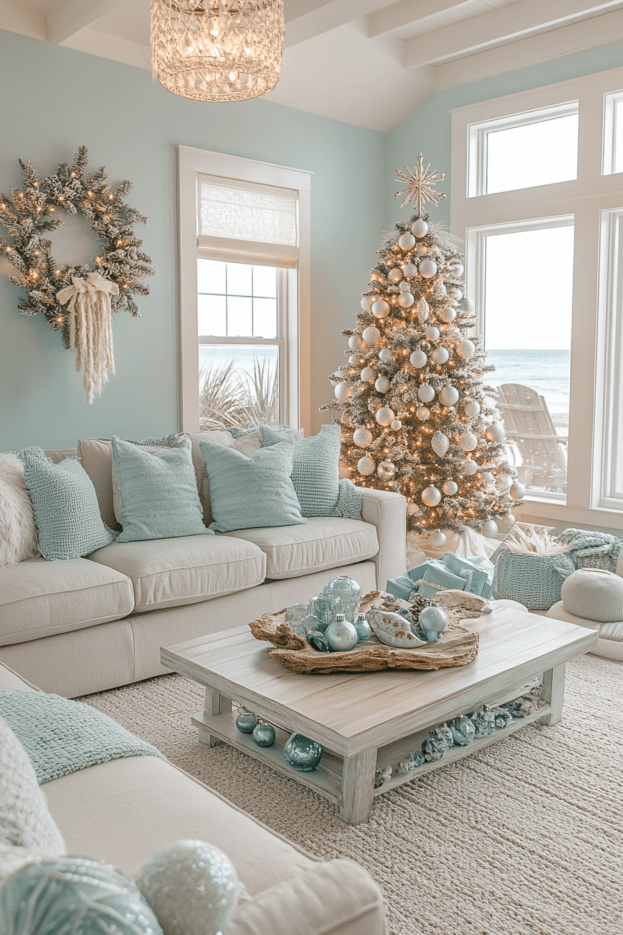 Channel the calm of the coast this holiday season with cozy Christmas decor that mixes beachy elegance with festive touches. Pale blues, driftwood accents, and seashell ornaments offer a breath of fresh air. Soft lights and woven textures tie it all together for a laid-back, breezy celebration. It’s a holiday escape for those who dream of salt air and sandy toes.
