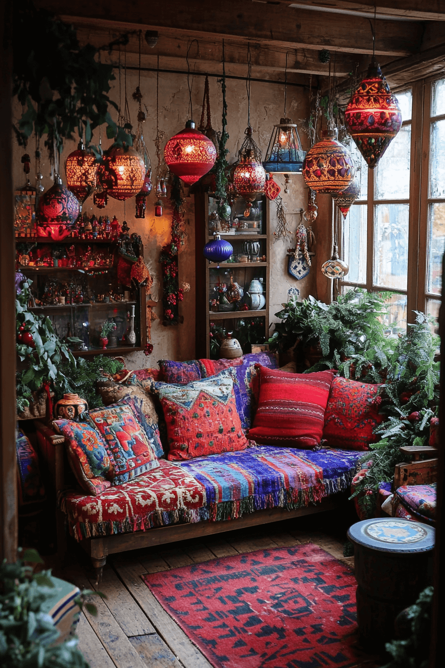 Bold patterns, layered fabrics, and global details give this cozy Christmas decor an adventurous soul. Handmade ornaments and unique textures tell stories of travel and creativity. The colors are rich, the mood is free-spirited, and every inch radiates warmth. It’s artistry wrapped in holiday comfort. Unleash your inner wanderer and fill your home with spirited, joyful design.