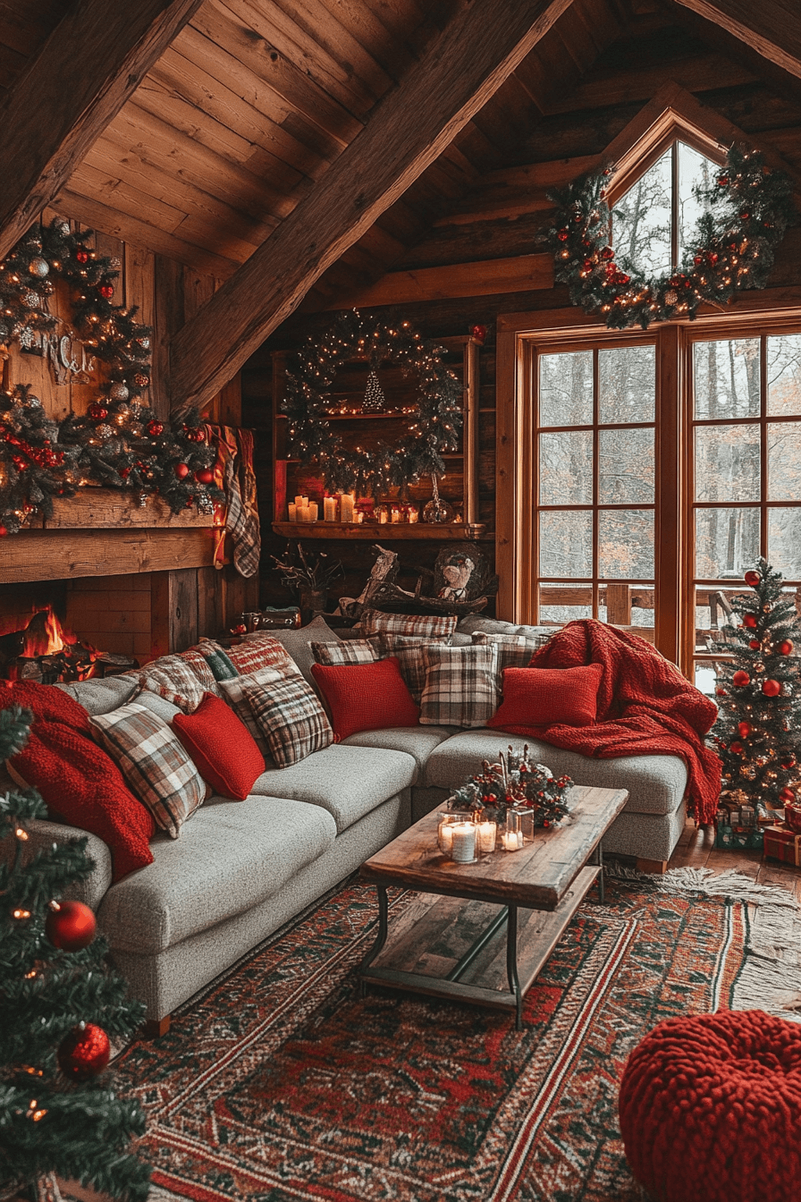 Warm flannels, rustic woods, and twinkle lights combine to form this cabin-inspired cozy Christmas decor. Each detail radiates comfort, from log textures to plaid accents. The look is timeless and deeply relaxing, perfect for winter nights in. It’s the kind of atmosphere that feels like home. Settle in with cozy charm and create your own mountain-style retreat.