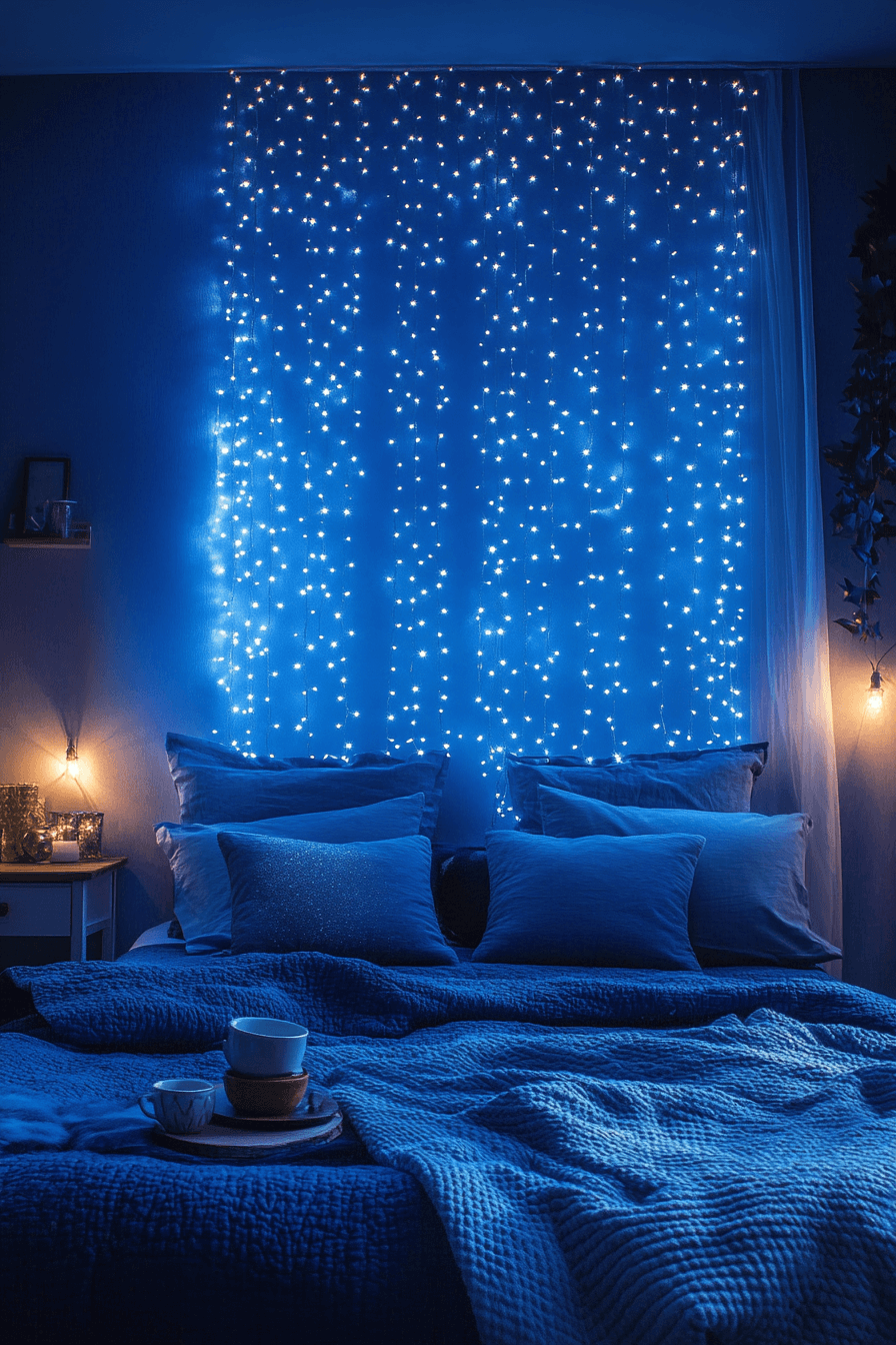 Deep blue tones and silvery highlights give this cozy Christmas decor a celestial calm. The subtle shimmer feels soothing, evoking nights under the stars. It’s elegant yet peaceful, glowing with quiet luxury. The mood inspires reflection and rest. Breathe in the stillness and let your home glow with starlit beauty.