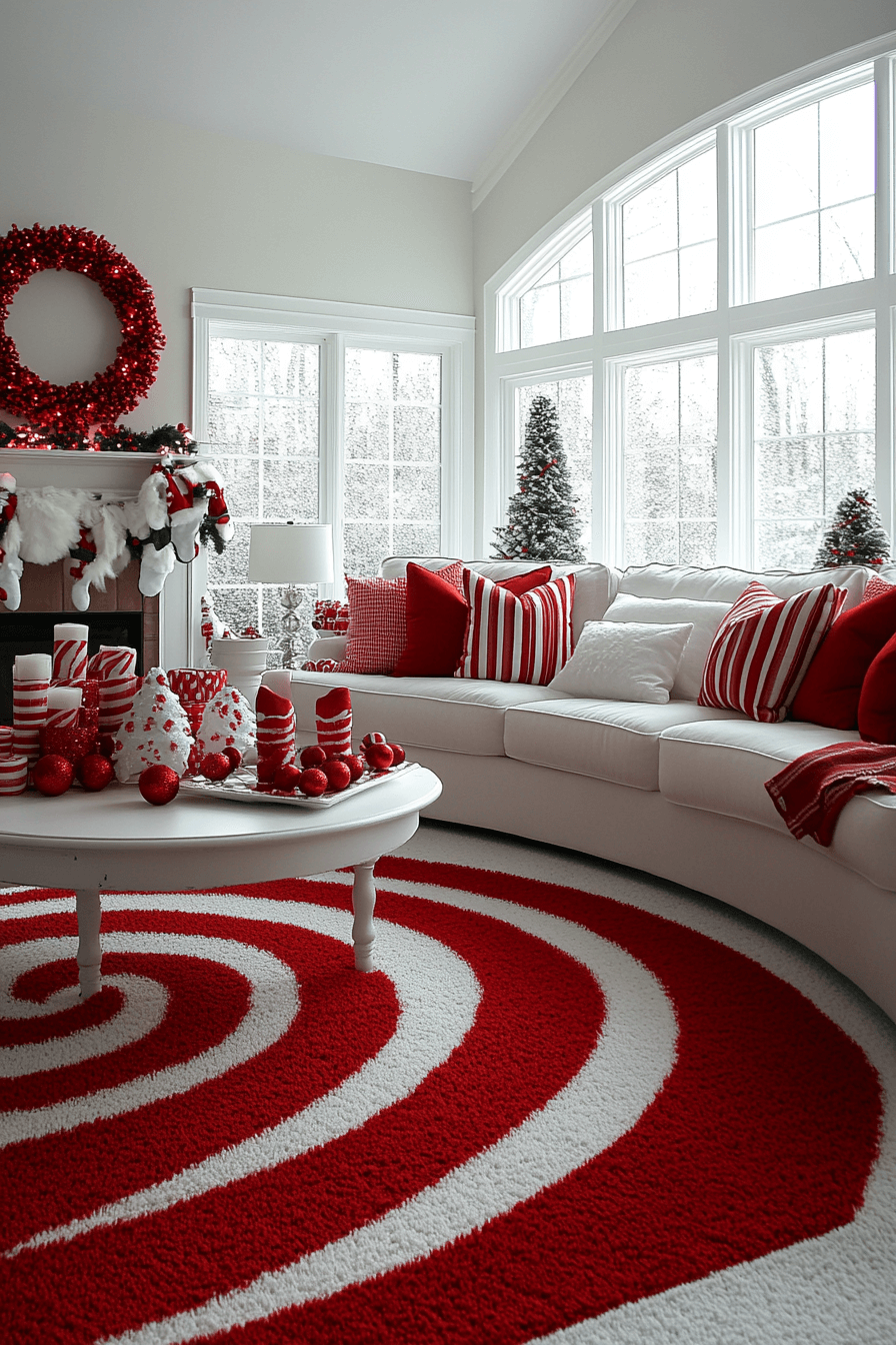 Candy-cane stripes and bursts of red bring playful sweetness to this cheerful cozy Christmas decor. Every accent sparkles with childlike joy and holiday fun. It’s energetic, colorful, and full of charm. The combination of whimsy and style keeps things bright and modern. Add a pop of peppermint cheer and give your home a joyful twist.