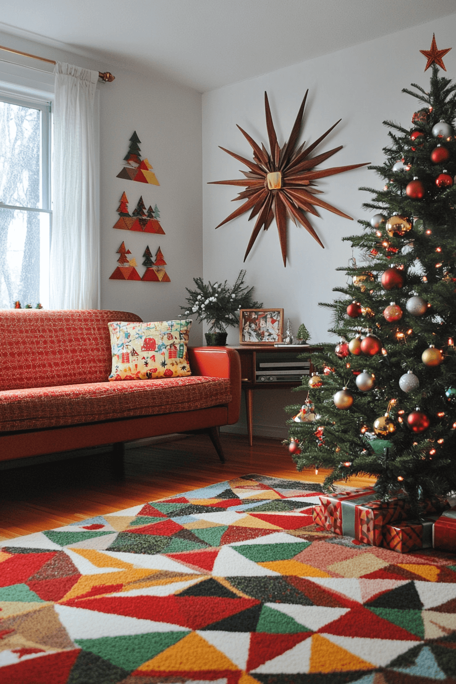 Retro ornaments, bright colors, and cheerful patterns infuse your space with vibrant nostalgia. This cozy Christmas decor is playful, joyful, and impossible to ignore. The mid-century vibe brings energy and lighthearted fun to every corner. It’s a celebration of vintage style and modern happiness. Rewind the holidays in style and rediscover the joy of festive color and charm.