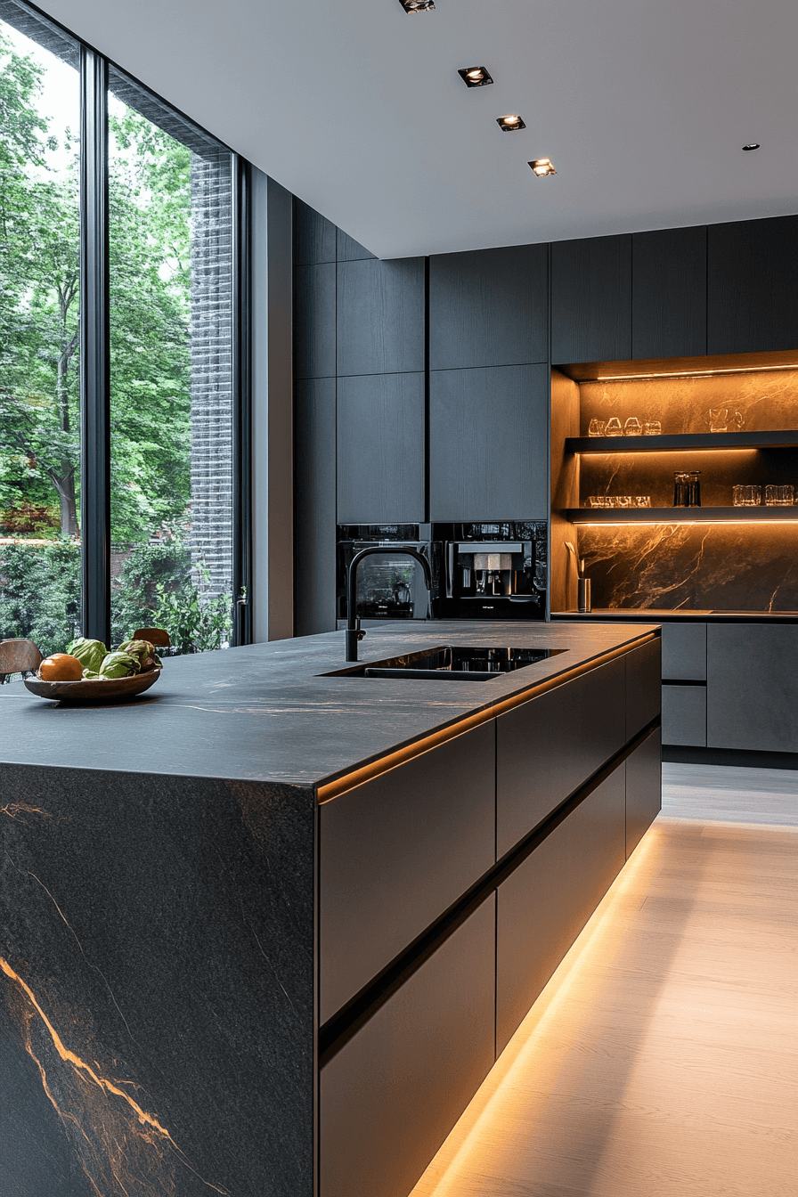Bold design choices transform a dark grey kitchen into a standout feature full of personality. Dramatic lighting and deep tones create instant impact. Statement surfaces and sleek finishes amplify the look. Lighter accents keep the palette balanced. The space feels confident and unforgettable. Make your dark grey kitchen a showstopping focal point!