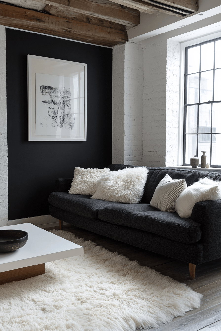 A luxe loft aesthetic adds depth and drama to a dark grey sofa living room with elevated style. Open layouts and tall ceilings allow the charcoal sofa to command attention. Rich accent tones like jewel hues enhance the sense of sophistication. Plush materials and metallic touches introduce a hint of glamour. This dark grey sofa living room blends modern living with upscale appeal. Explore high-end loft-style ideas for your home!