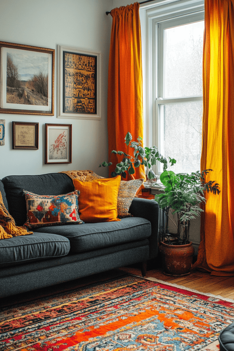 Eclectic styling brings personality into a dark grey sofa living room with creative flair. The charcoal sofa provides a versatile base for mixing colors and patterns. Unique décor pieces add character and charm. Layered elements create a dynamic and engaging look. This dark grey sofa living room feels artistic and one-of-a-kind. Express your style with eclectic inspiration now!