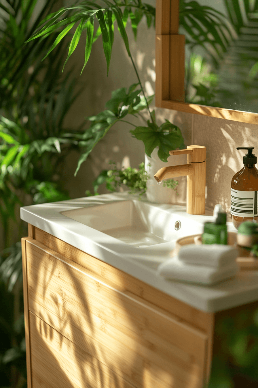 Bamboo materials create a calming and eco-friendly atmosphere with a double sink bathroom vanity that feels natural and fresh. Warm tones bring organic beauty into the space. A double sink bathroom vanity in bamboo highlights sustainability and style. Clean lines keep the look modern. The space feels serene and balanced. Embrace eco-friendly design with a bamboo double sink bathroom vanity now!