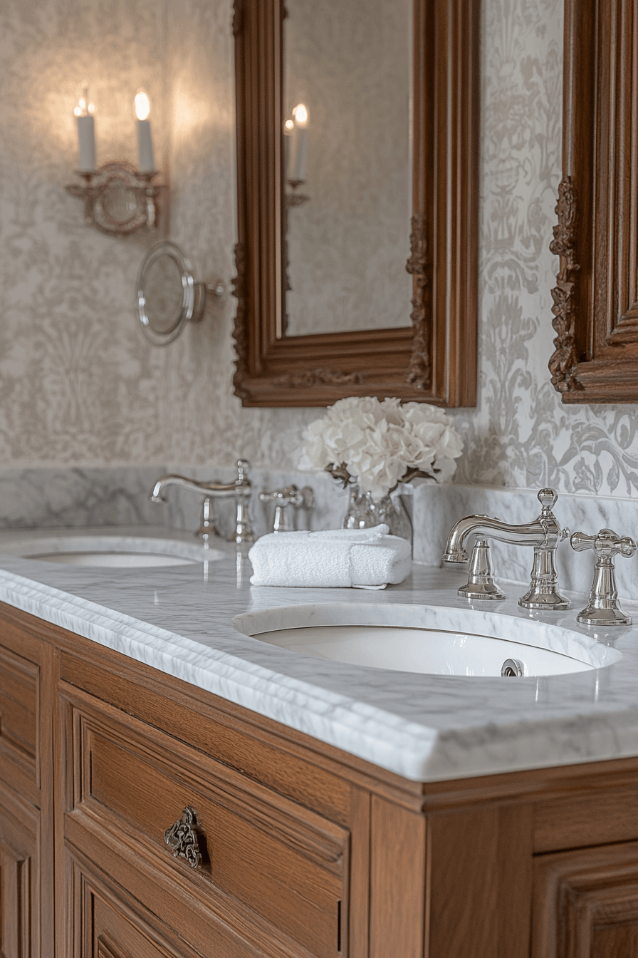 Marble surfaces bring a refined and timeless elegance to a double sink bathroom vanity that feels effortlessly luxurious. Natural veining adds unique detail to every design. A double sink bathroom vanity with marble pairs beautifully with both modern and classic decor. Durable materials ensure long-lasting beauty. The space feels polished and upscale. Elevate your bathroom with a marble double sink bathroom vanity now!
