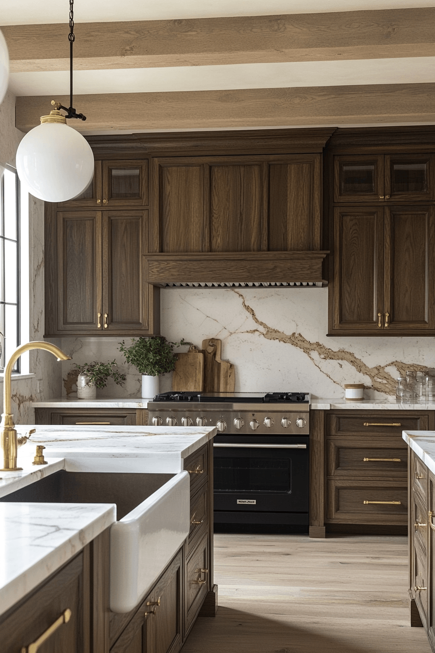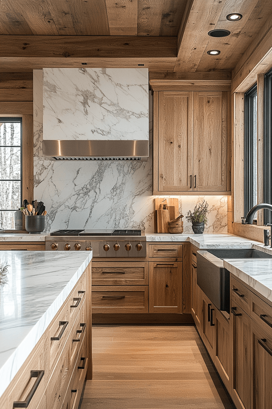 19. Marble Hickory Cabinet Pairing