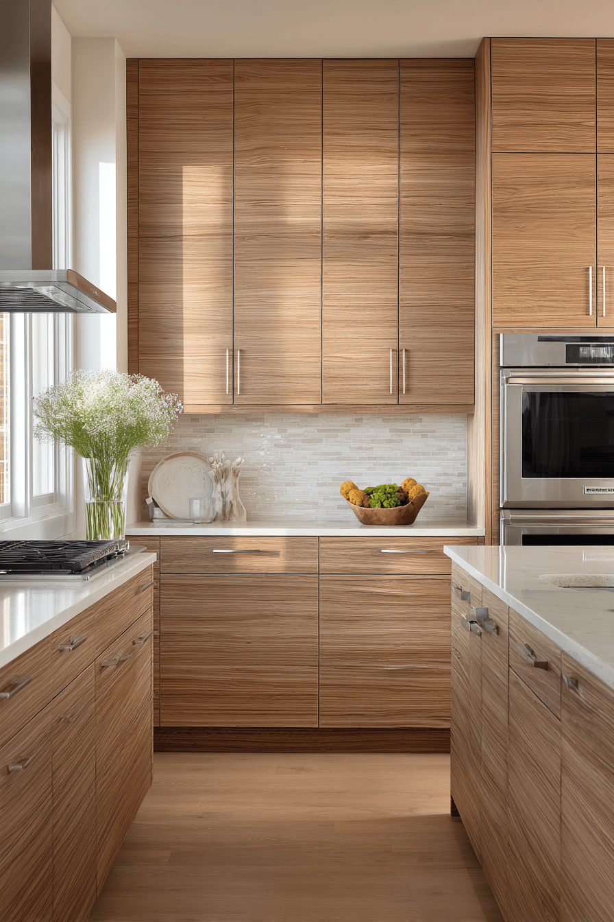 Horizontal grain designs give hickory kitchen cabinets a sleek and flowing look. The lines stretch across the space, creating visual width. This layout makes kitchens feel larger. Flat fronts enhance the modern aesthetic. Hickory kitchen cabinets feel both structured and natural. Explore horizontal grain ideas.