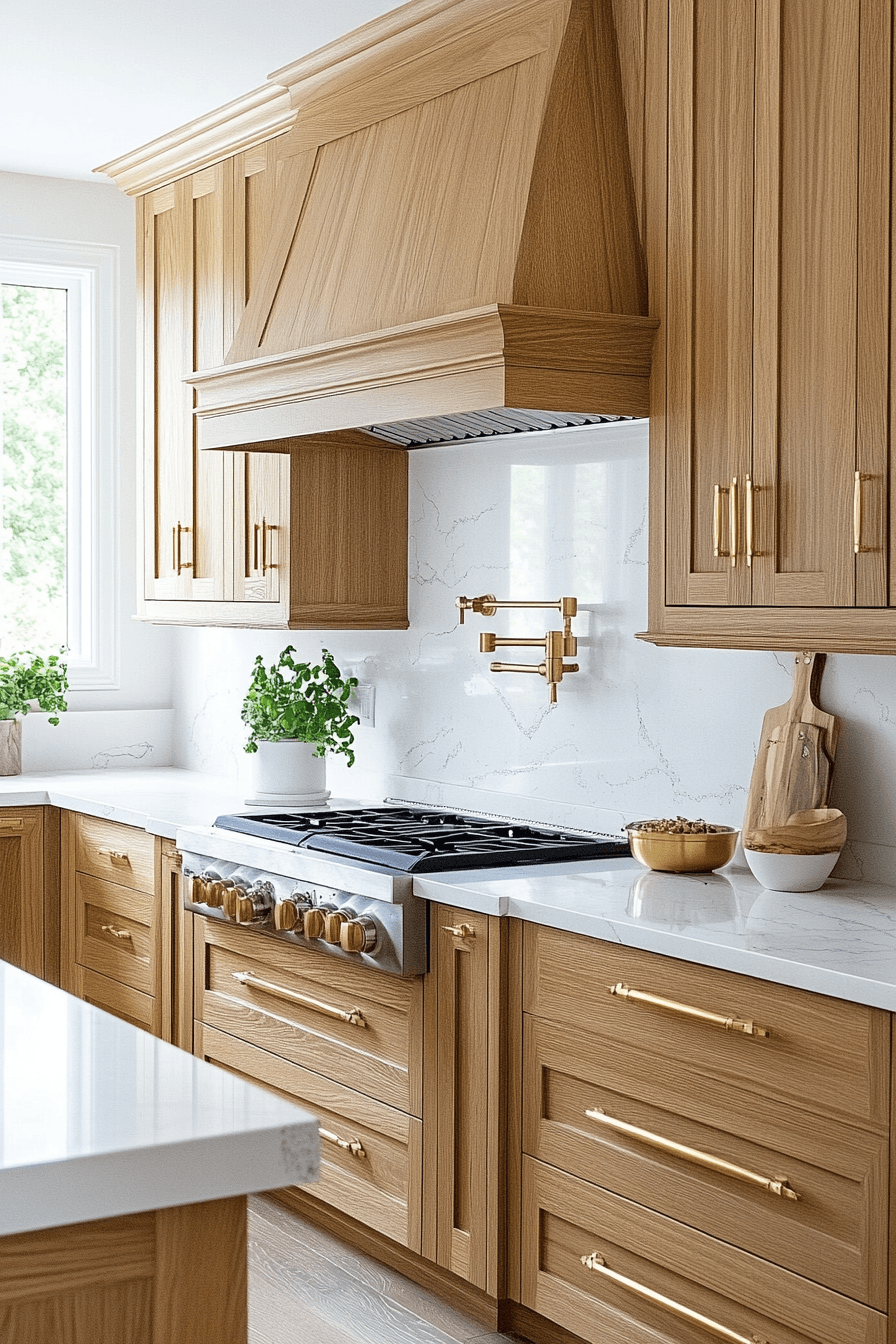 Gold accents bring warmth and elegance to hickory kitchen cabinets. The metallic tones complement the natural wood beautifully. This pairing feels refined yet approachable. It adds a subtle touch of luxury. Hickory kitchen cabinets shine with gold details. Discover how to incorporate warm metallic finishes.