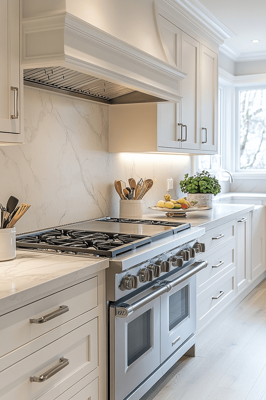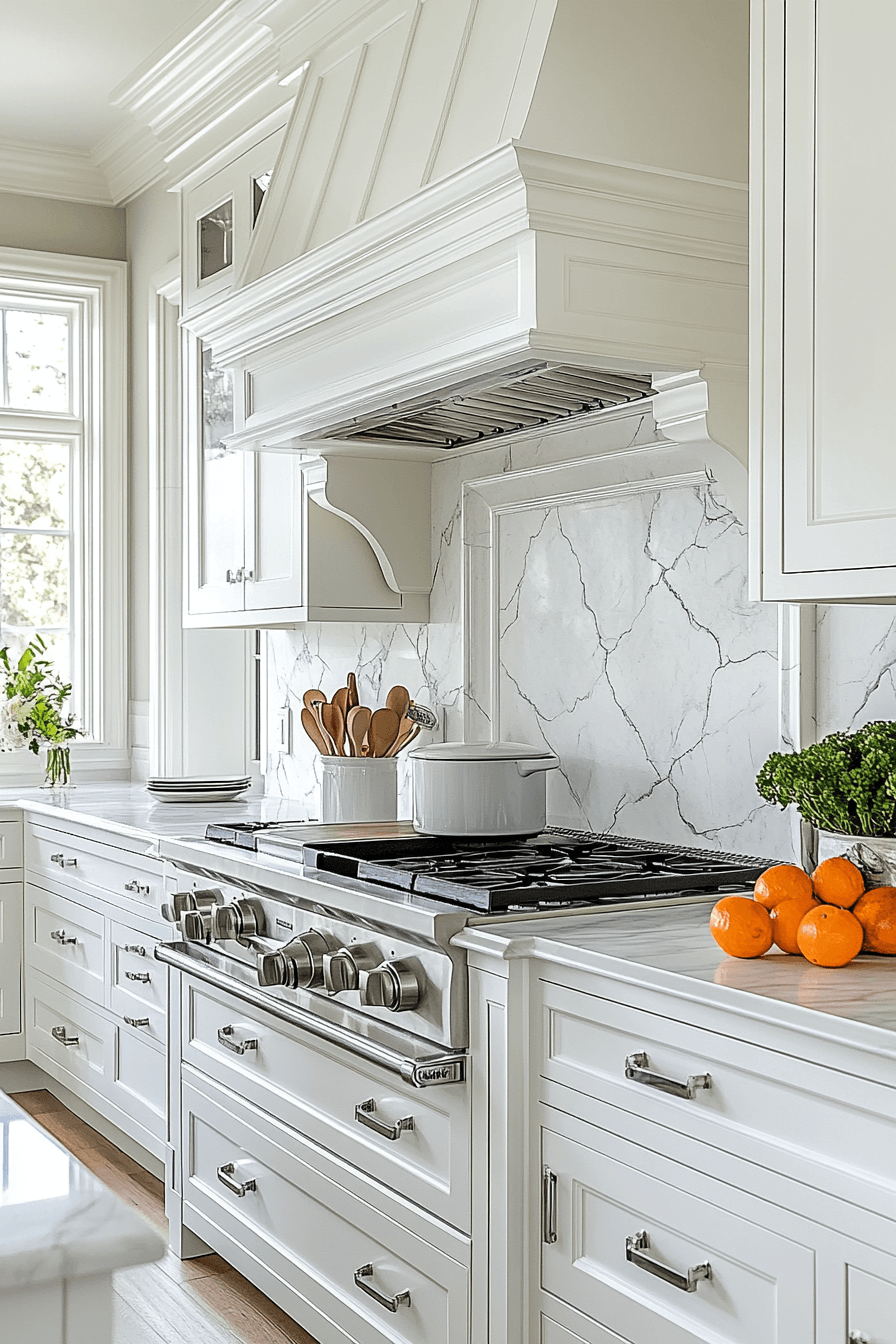Crisp simplicity defines frosty white kitchen cabinet color ideas. This cool shade enhances clarity and brightness. Frosty white cabinetry fits beautifully in minimalist and Scandinavian kitchens. It offers flexibility for evolving decor. The look feels fresh and modern.