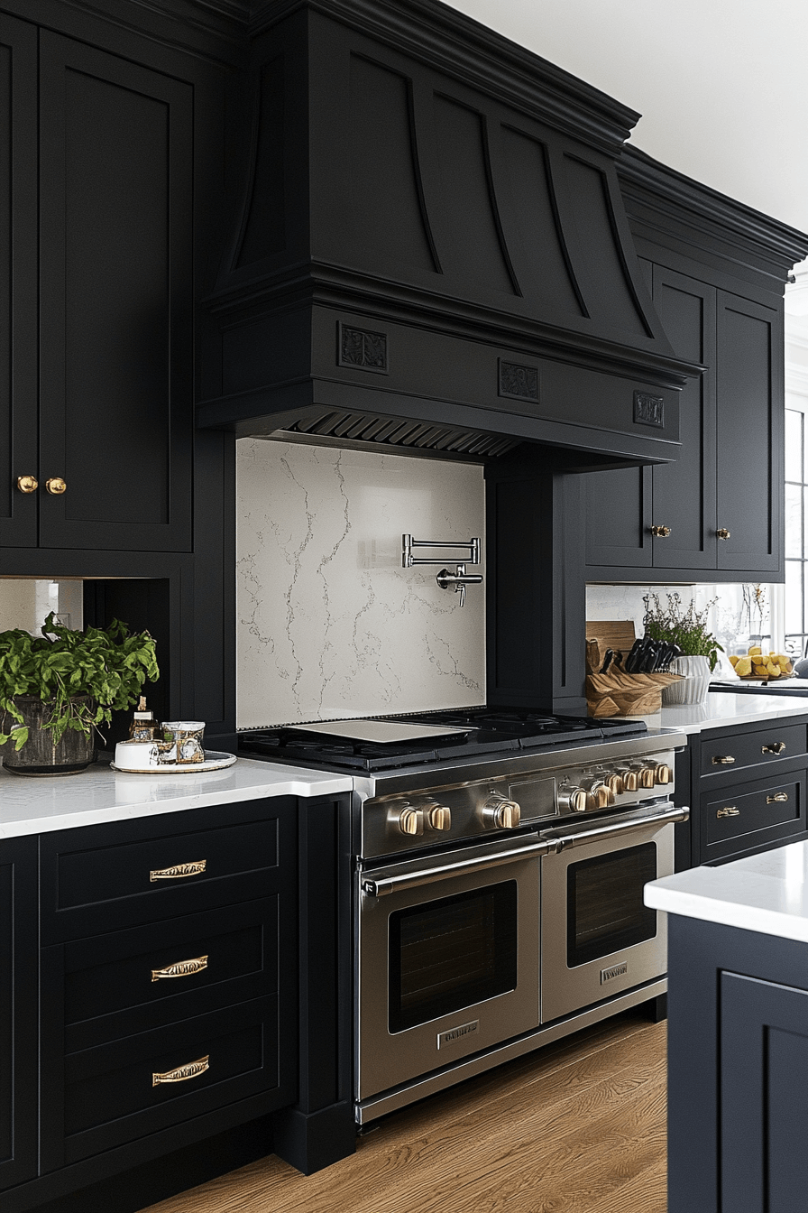 Dark drama steps forward when black takes the lead in kitchen cabinet color ideas. This striking shade adds depth and instant sophistication. Black cabinetry creates beautiful contrast against light counters and metallic finishes. It also offers everyday practicality by disguising wear. The look feels bold yet refined.