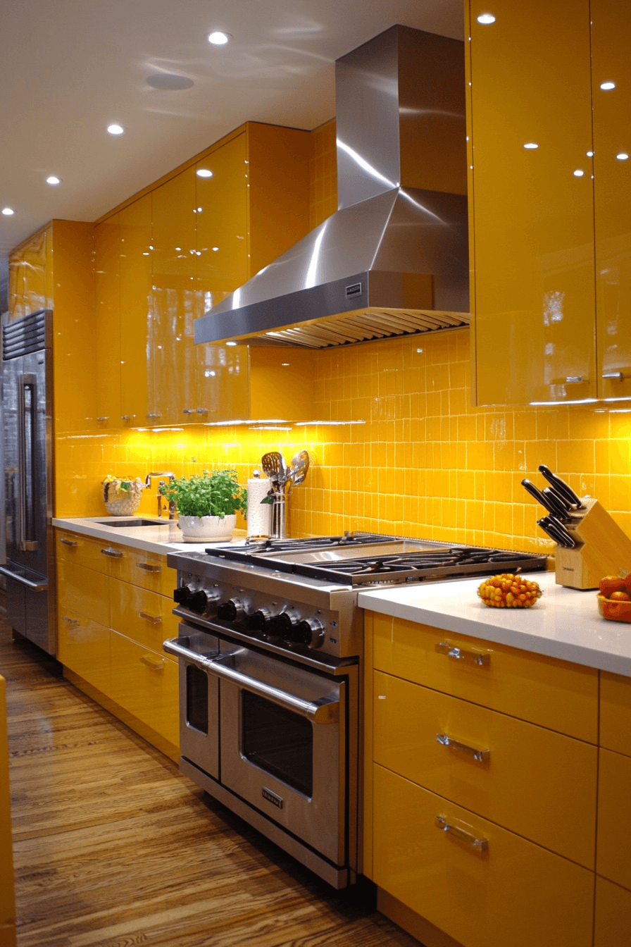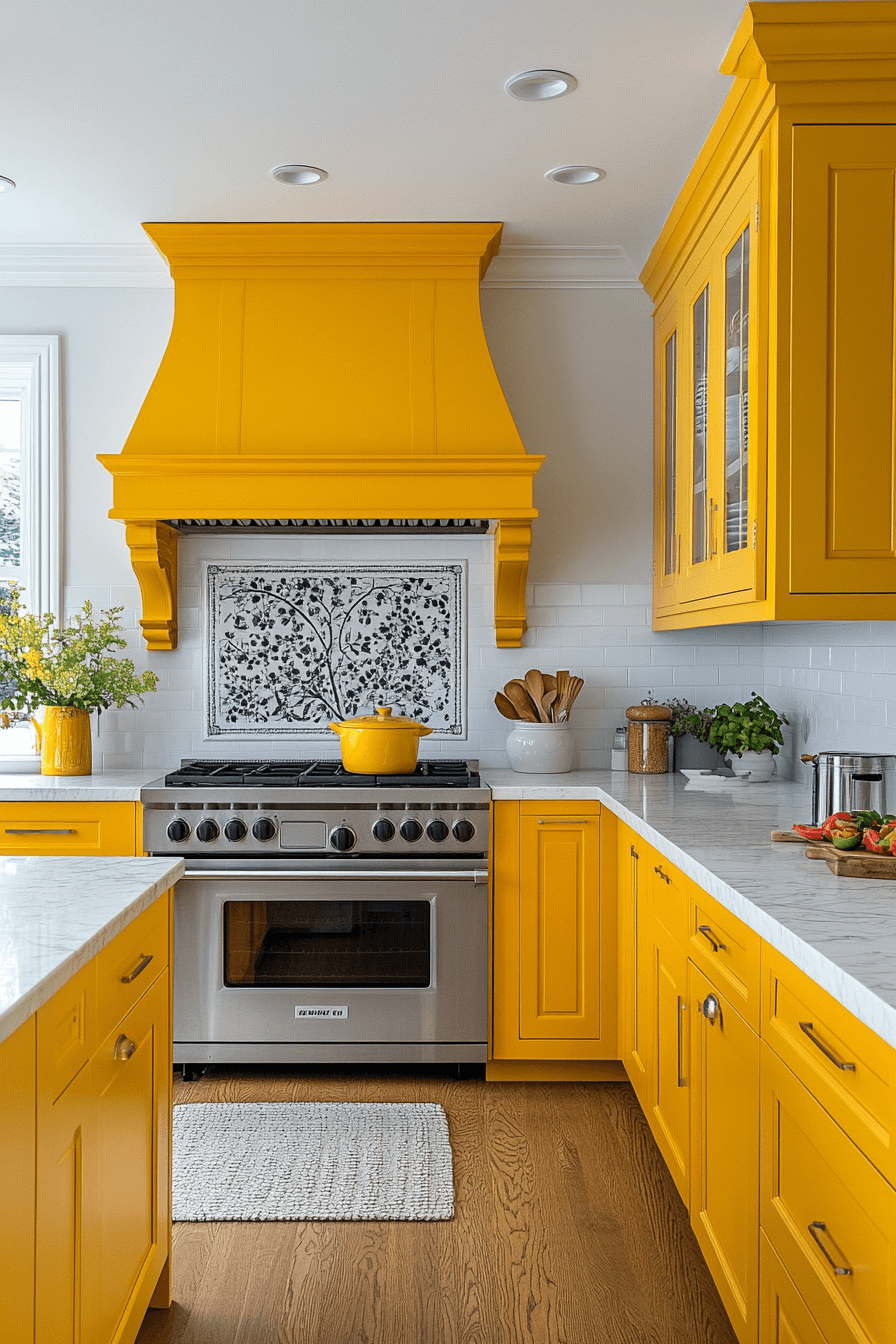 Nothing lifts the mood quite like yellow among energetic kitchen cabinet color ideas. This sunny shade brings warmth and cheer into the heart of the home. Yellow cabinets instantly brighten dim spaces and feel inviting. Balanced with neutral tones, the look stays stylish and fresh. The atmosphere feels joyful and welcoming.