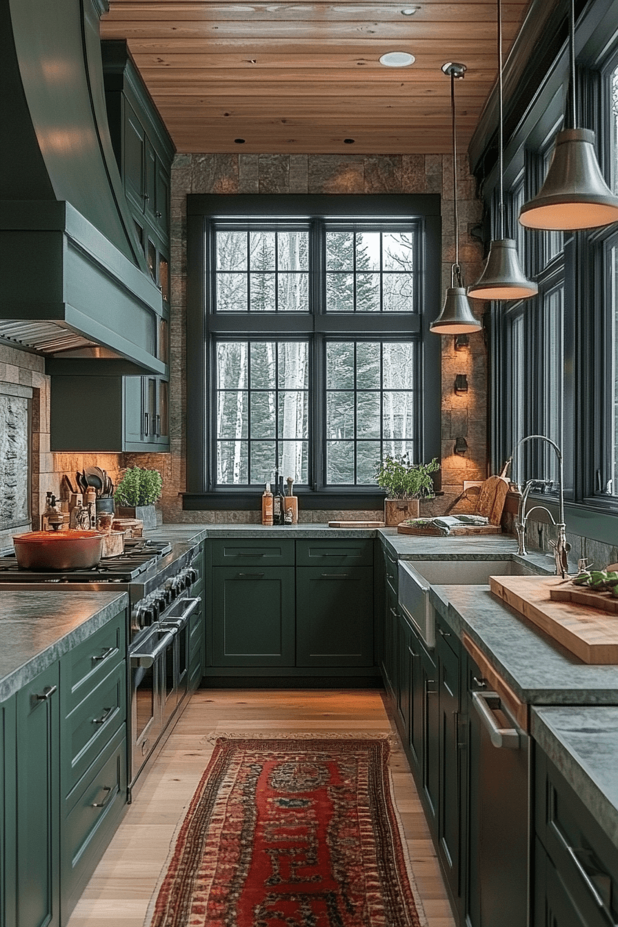 Earth-connected warmth shines through green-focused kitchen cabinet color ideas. Forest tones add richness without overwhelming the space. Green cabinets pair effortlessly with wood textures and warm metals. The result feels grounded and inviting. It’s a color choice that blends comfort with sophistication.