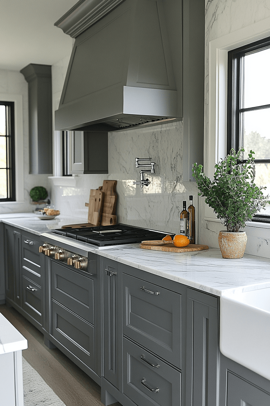 Understated beauty defines gray-based kitchen cabinet color ideas. This adaptable neutral brings structure and calm to any kitchen. Gray cabinetry supports both modern and traditional designs. It adds depth while allowing other elements to stand out. The overall look feels polished and balanced.