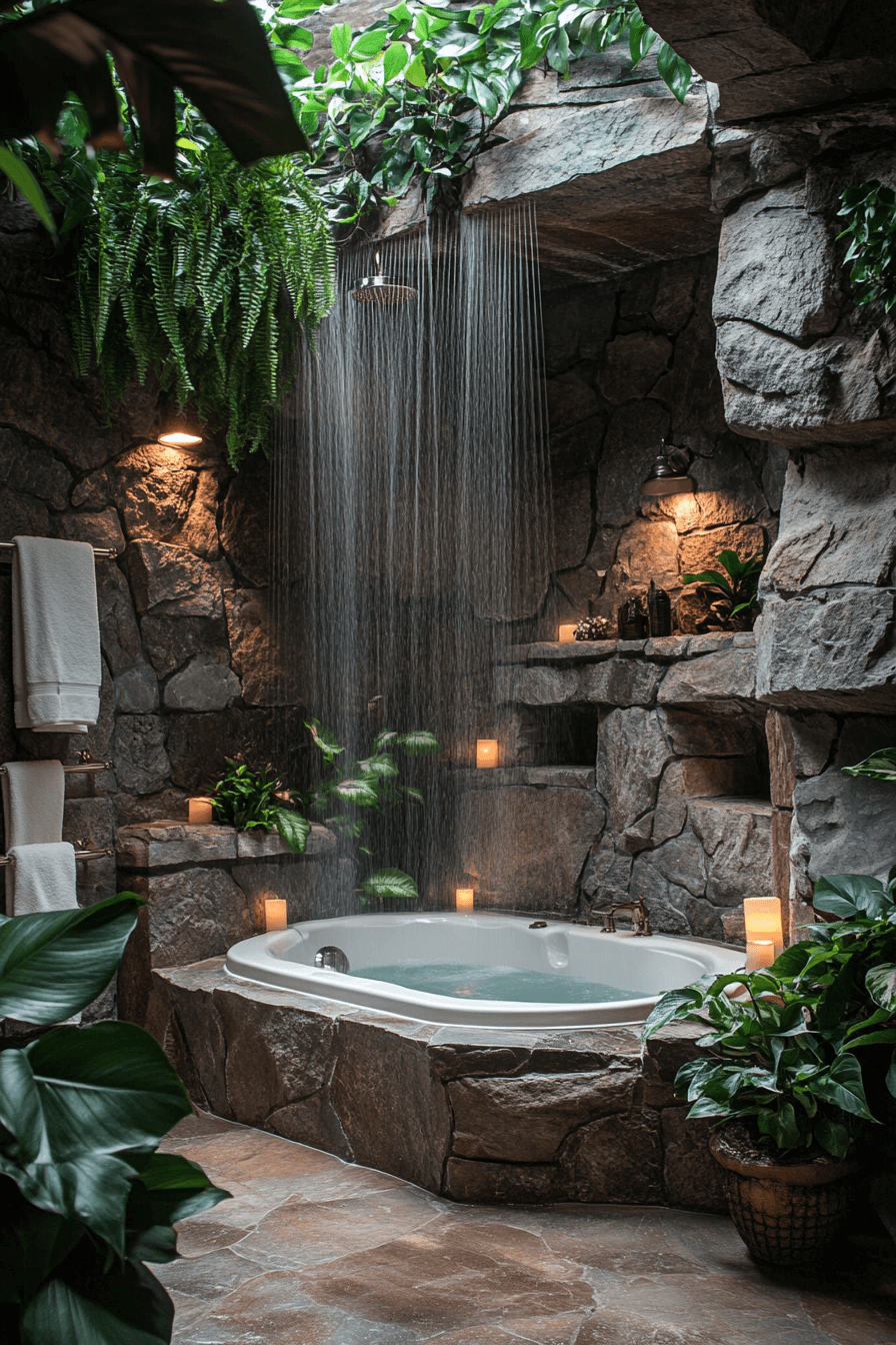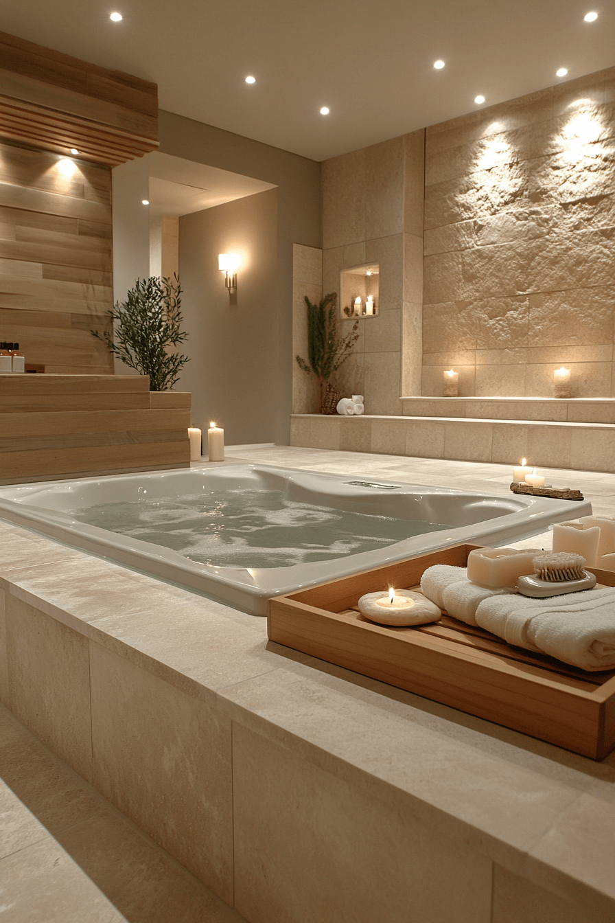 This spa-inspired luxury bathroom design turns daily rituals into moments of restoration. Soaking tubs, rainfall showers, and calming textures work together to create a retreat-like atmosphere. Natural materials ground the design while soft lighting promotes relaxation. Plush details enhance comfort without clutter. The space feels deeply restorative.