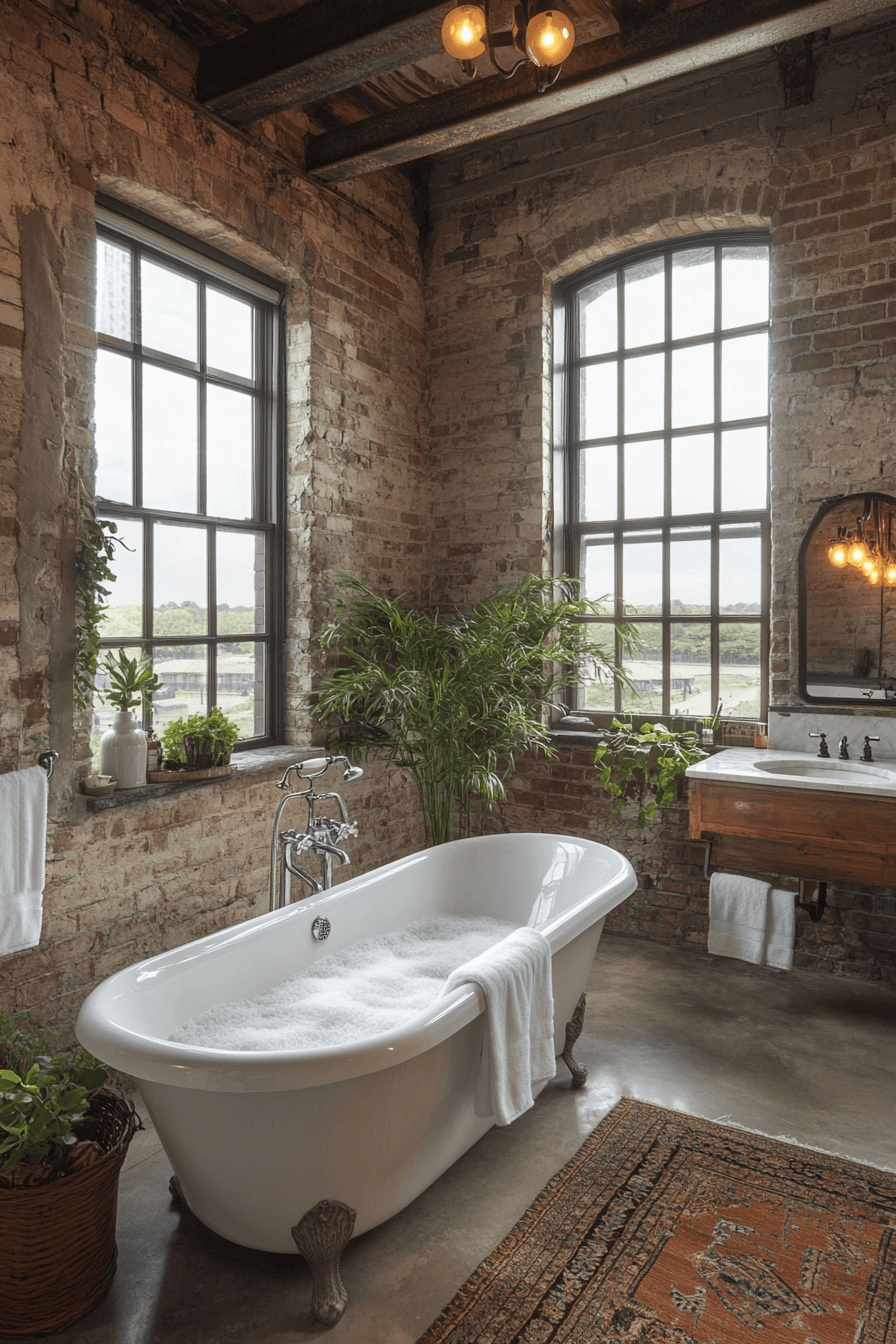Loft-style architecture shapes this luxury bathroom design with openness and edge. Exposed elements add character. Sleek fixtures maintain sophistication. Natural light enhances balance. The result feels urban and elevated.