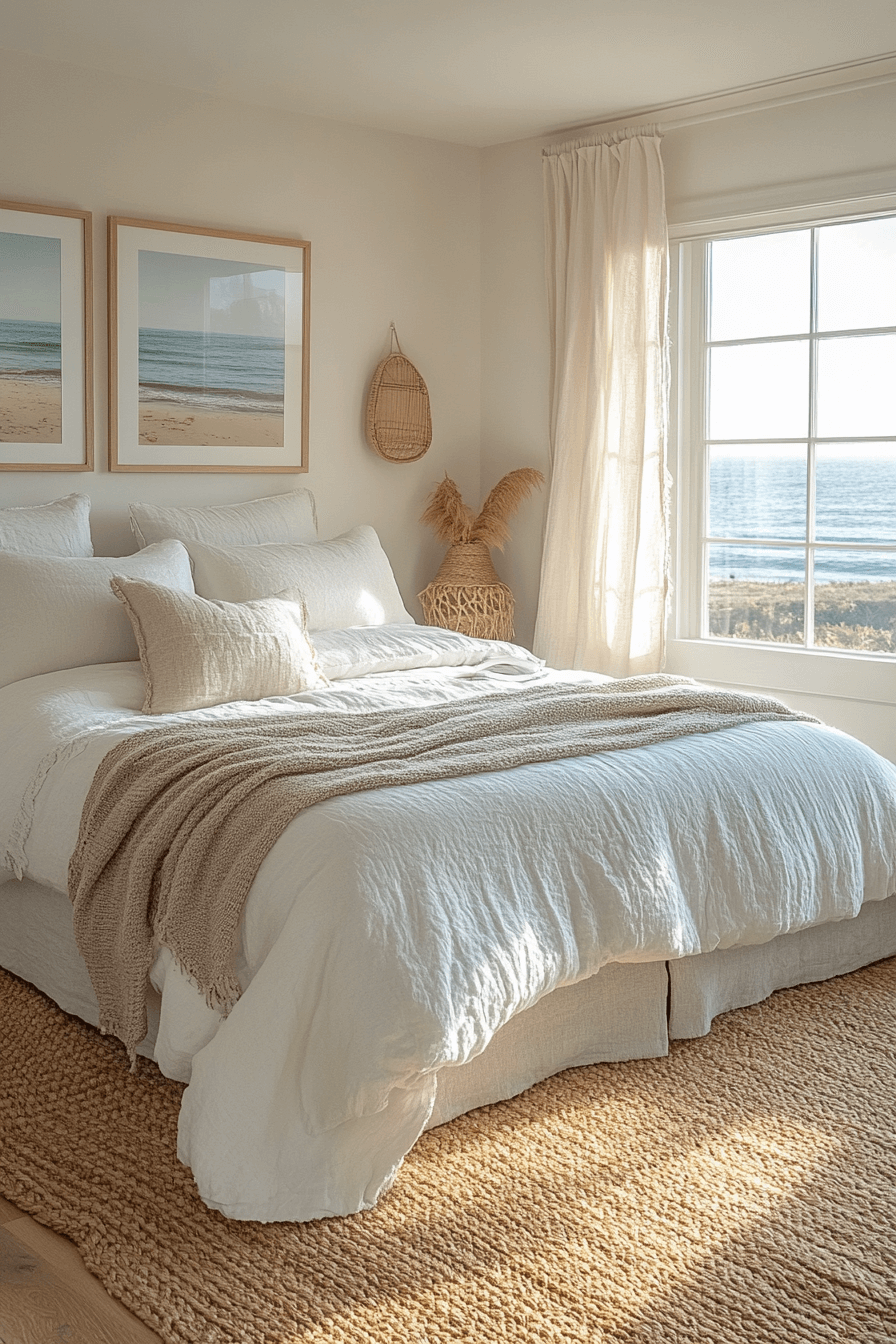 A breezy coastal influence gives this minimalistic bedroom a relaxed charm. Airy blues and soft whites echo the calm of seaside living. Furniture stays simple to let texture and tone shine. The minimalistic bedroom feels light and restorative. It’s perfect for a retreat-like mood.