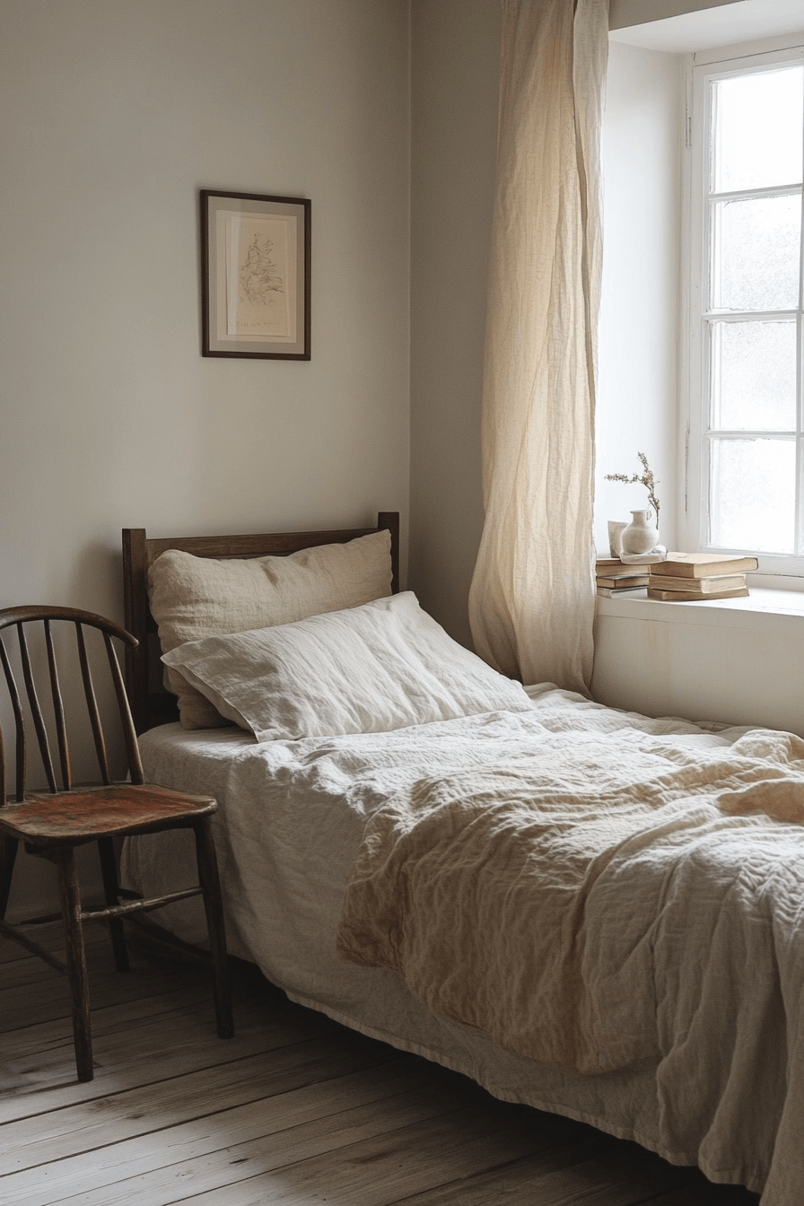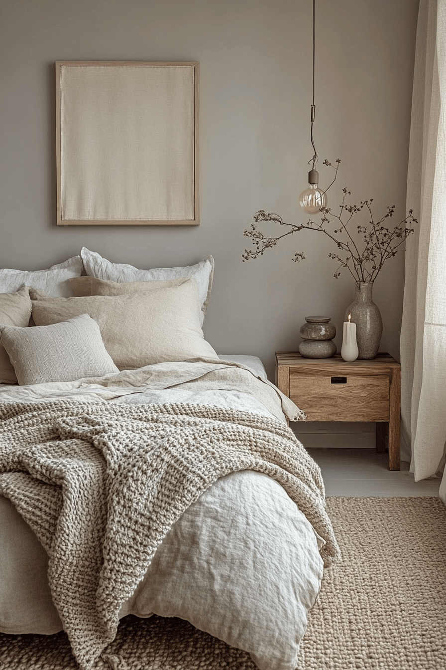 Soft Nordic tones create warmth in this Scandinavian-inspired minimalistic bedroom. Wood accents and pale colors balance comfort and clarity. Natural light enhances the calm environment. Function and beauty coexist seamlessly. This minimalistic bedroom feels welcoming and refined.