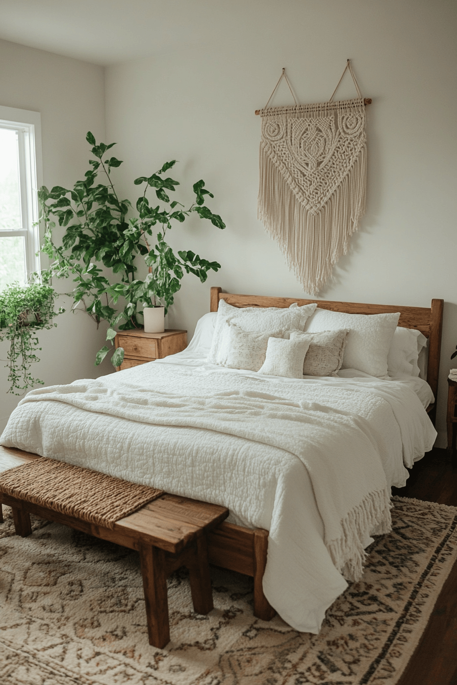 Artistic warmth meets simplicity in this boho-inspired minimalistic bedroom. Natural textures add personality without excess. Curated accents keep the room expressive yet calm. The minimalistic bedroom feels creative and grounded. Balance defines the design.