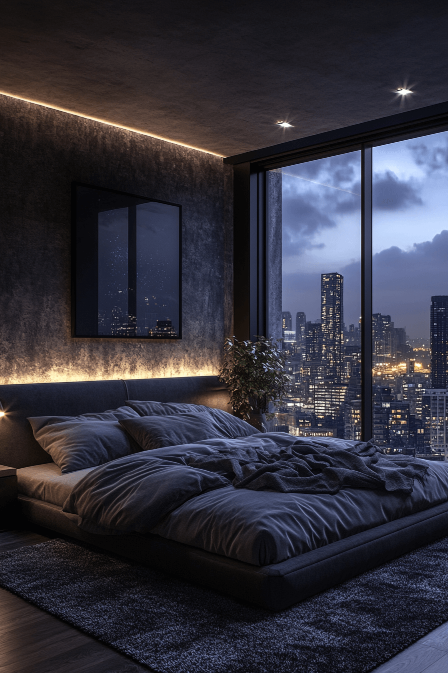 Clean silhouettes and modern finishes define this city-ready minimalistic bedroom. Neutral tones and uncluttered styling create a refined yet calming environment. Strategic lighting adds depth without overwhelming the room. Walls remain simple to highlight architectural lines. The minimalistic bedroom feels peaceful despite its urban edge.