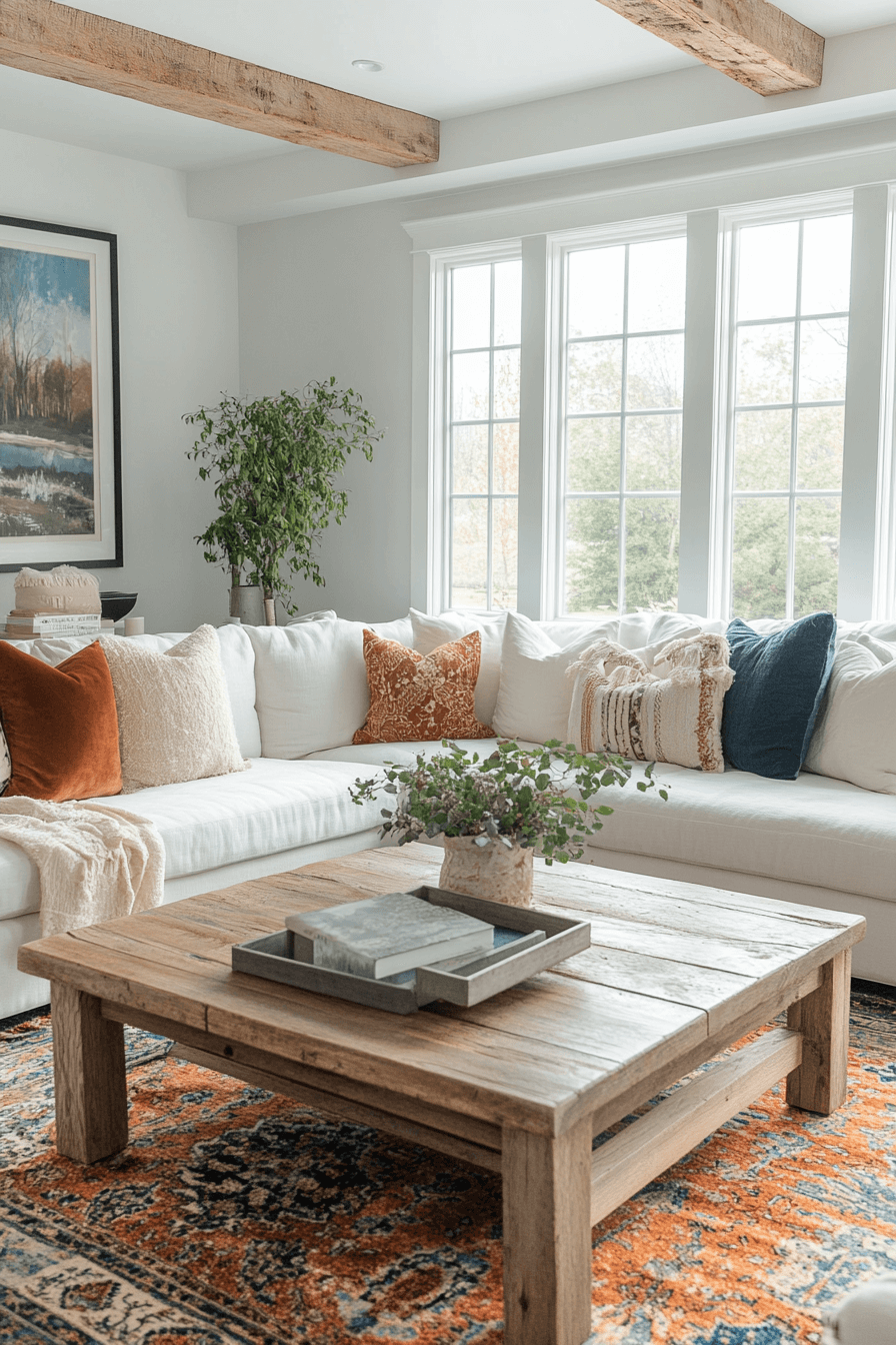Laughter fills a modern farmhouse interior family room where comfort meets charm. Traditional architectural features add warmth. Pops of color bring playful energy. Durable finishes support real life. Layered lighting adapts to every moment.