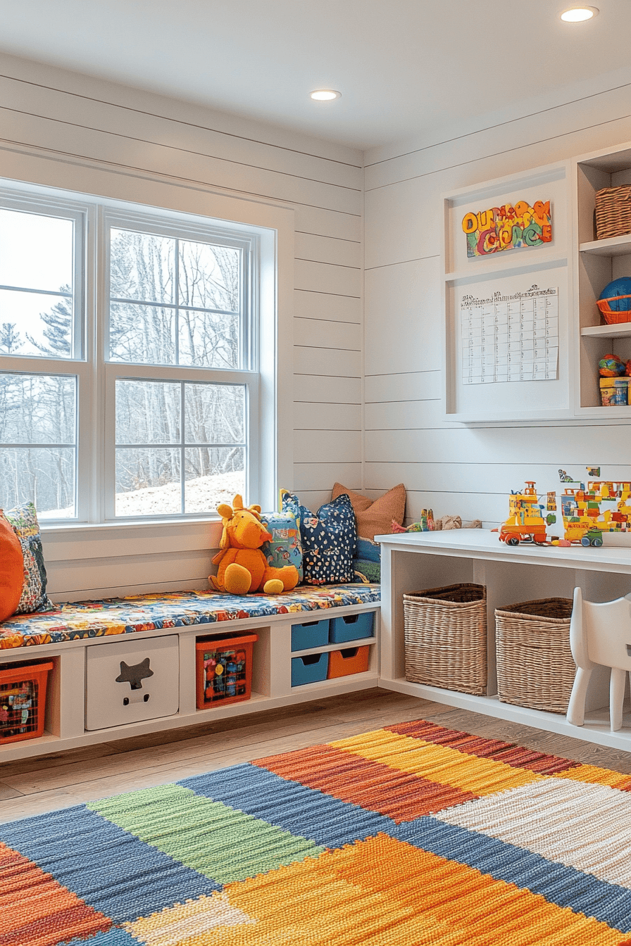 Creativity thrives in a modern farmhouse interior playroom that feels joyful yet tidy. Open storage supports imagination. Durable finishes stand up to play. Soft colors balance energy. Cozy corners invite calm moments.