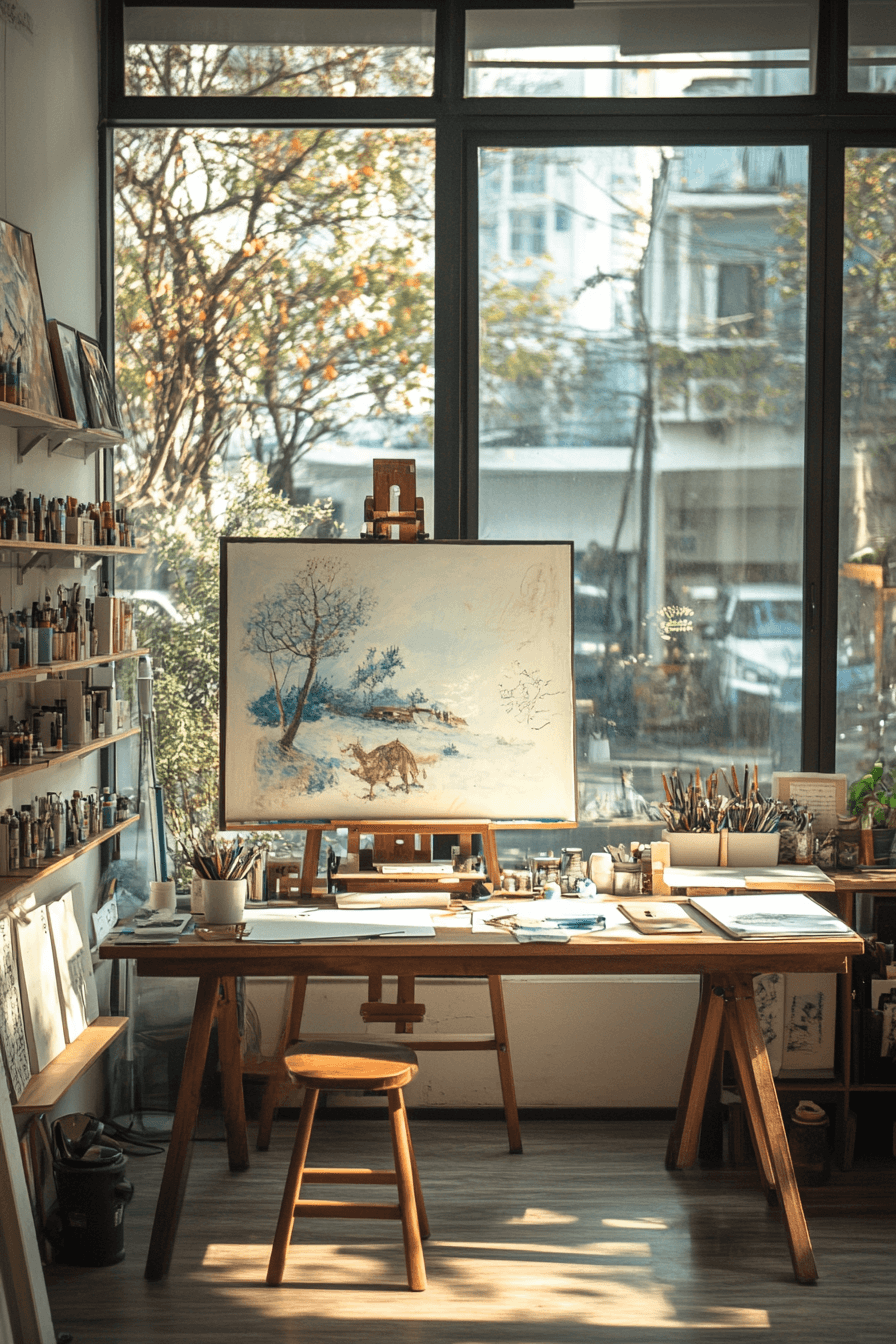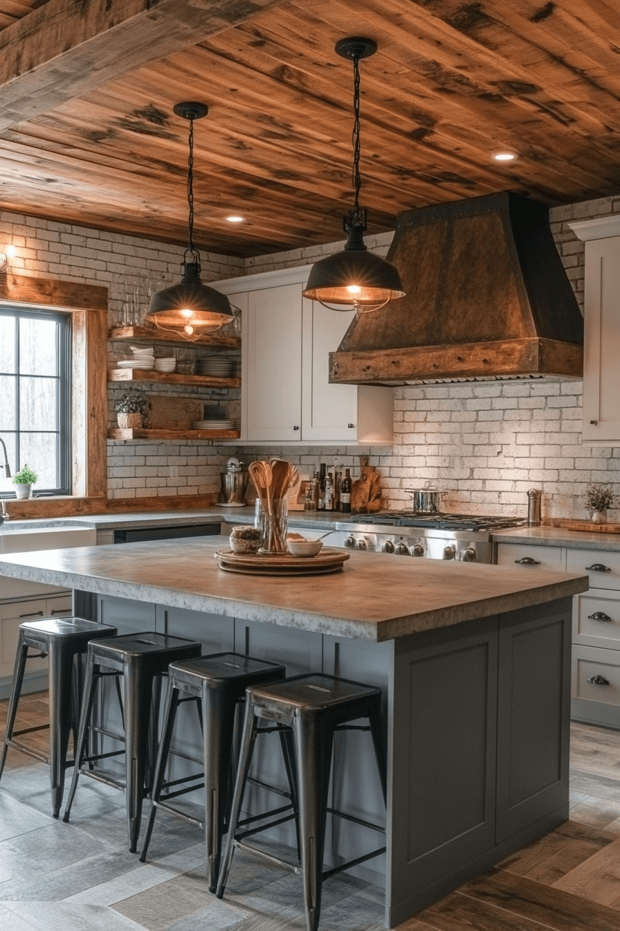 Inspiration flows in a modern farmhouse interior studio made for creative work. High ceilings add openness. Natural finishes ground the space. Organized storage supports focus. The atmosphere feels productive and calm.